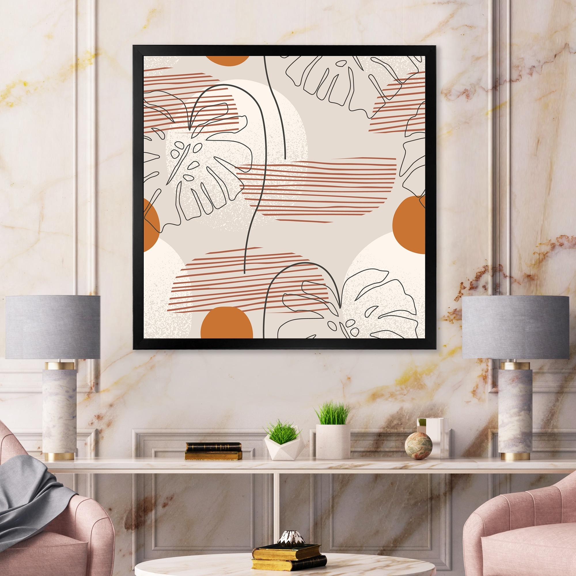 Designart "One Line Art Shapes & Abstract Monstera Leaf" Modern Framed Art Print