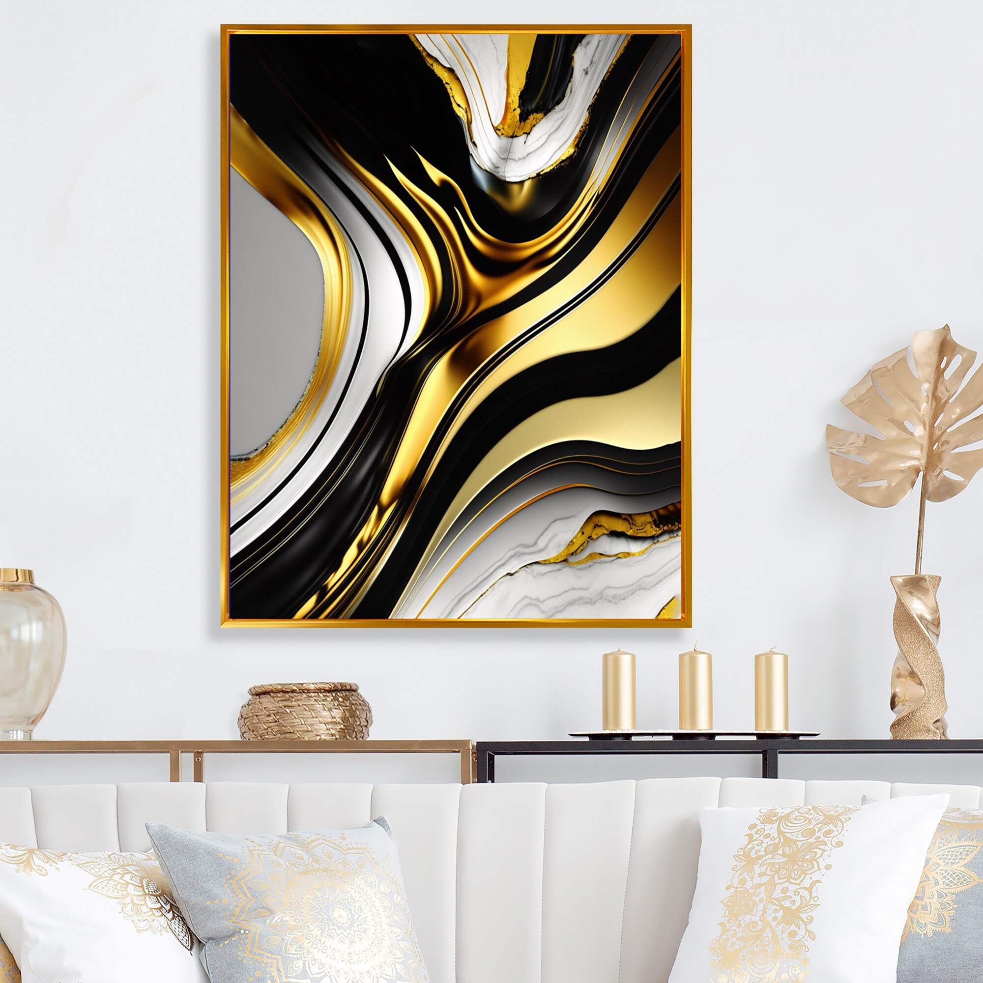 Designart "Abstract Geode Marble Waves Gold II" Abstract Framed Canvas Art Print