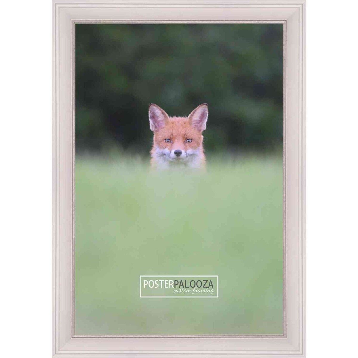 22x28 Traditional White Washed Complete Wood Picture Frame with UV Acrylic, Foam Board Backing, & Hardware