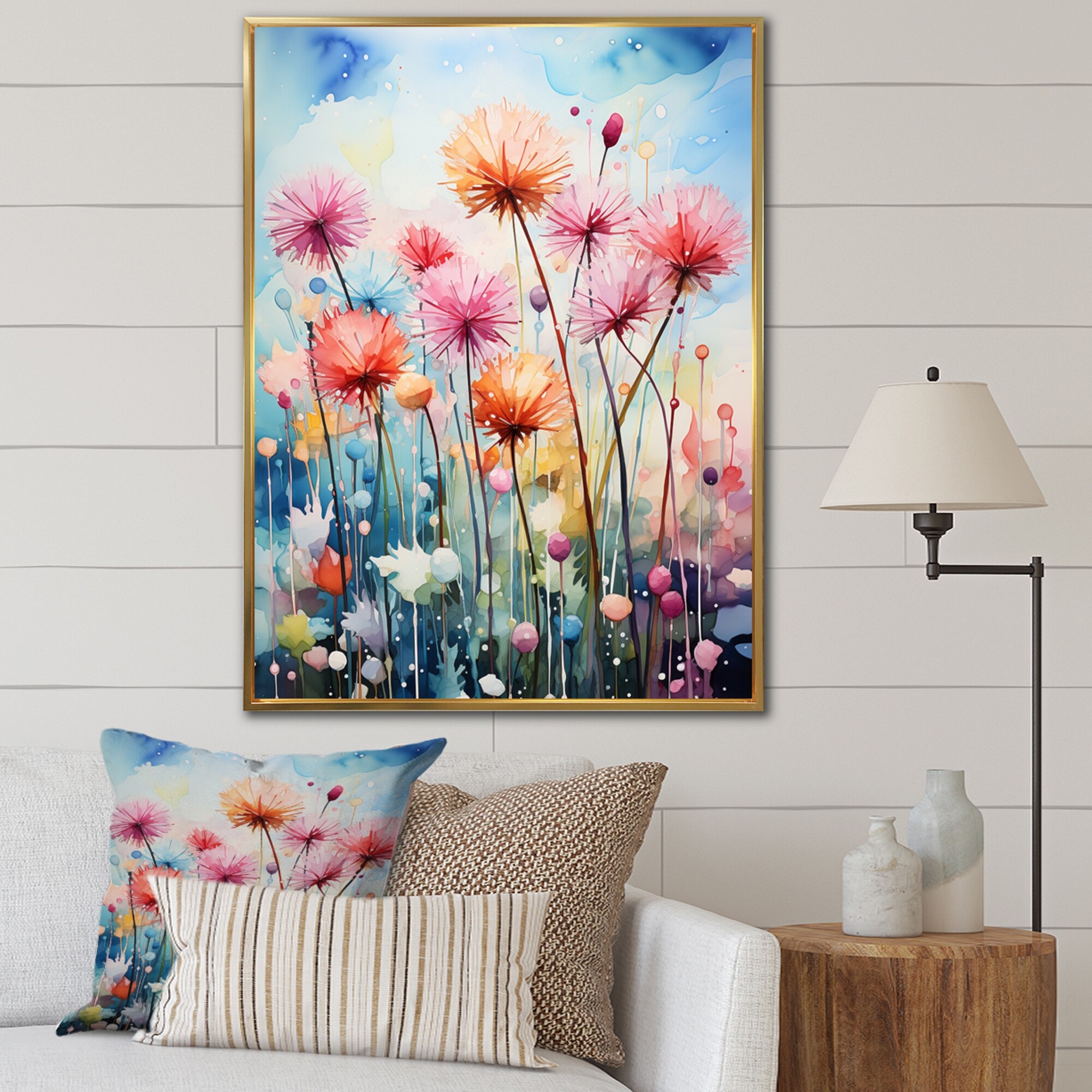 Designart "Dandelion Representation Multicolored Acrylic I" Dandelion Framed Canvas Prints