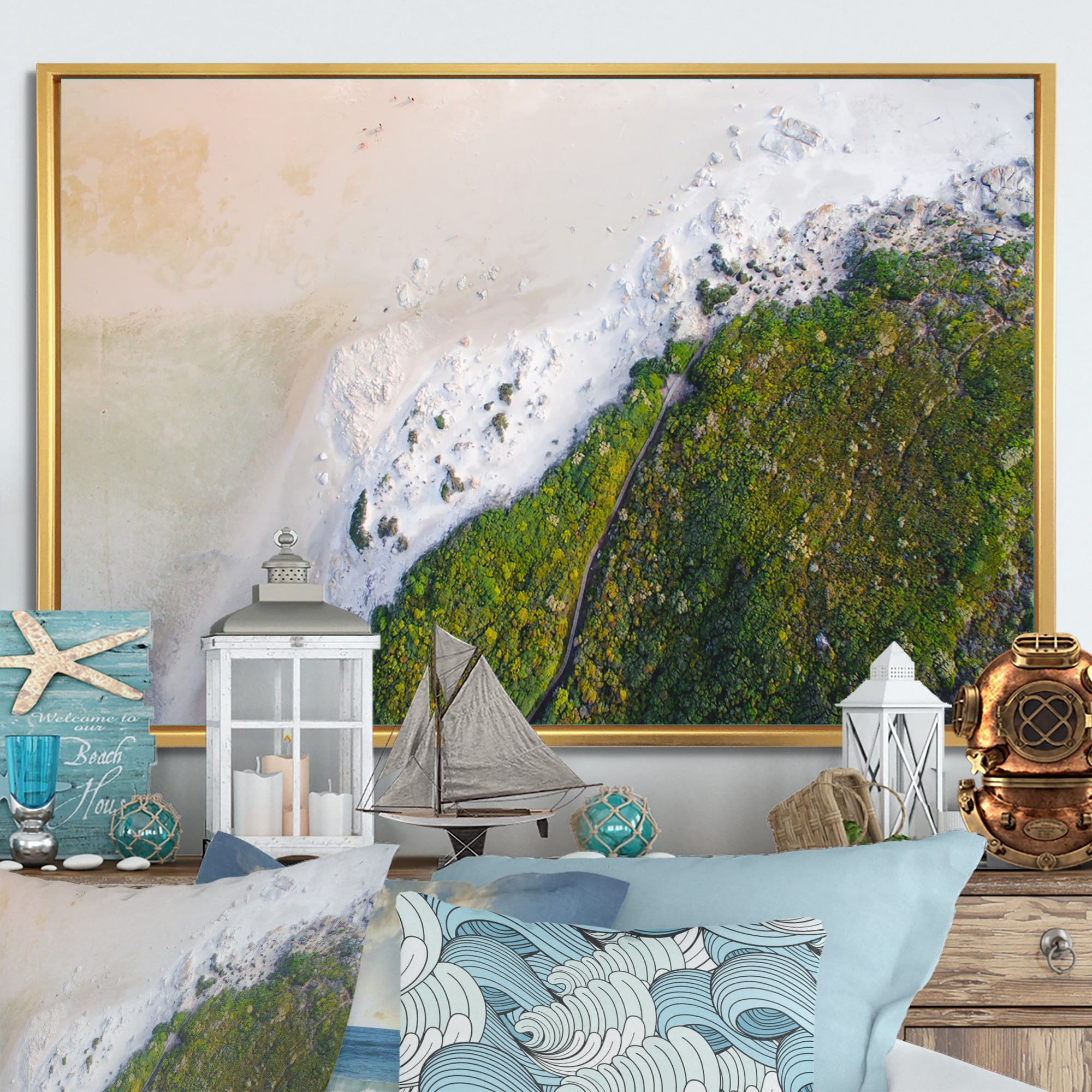 Designart "Aerial View of Ocean Coast" Nautical & Coastal Framed Wall Decor