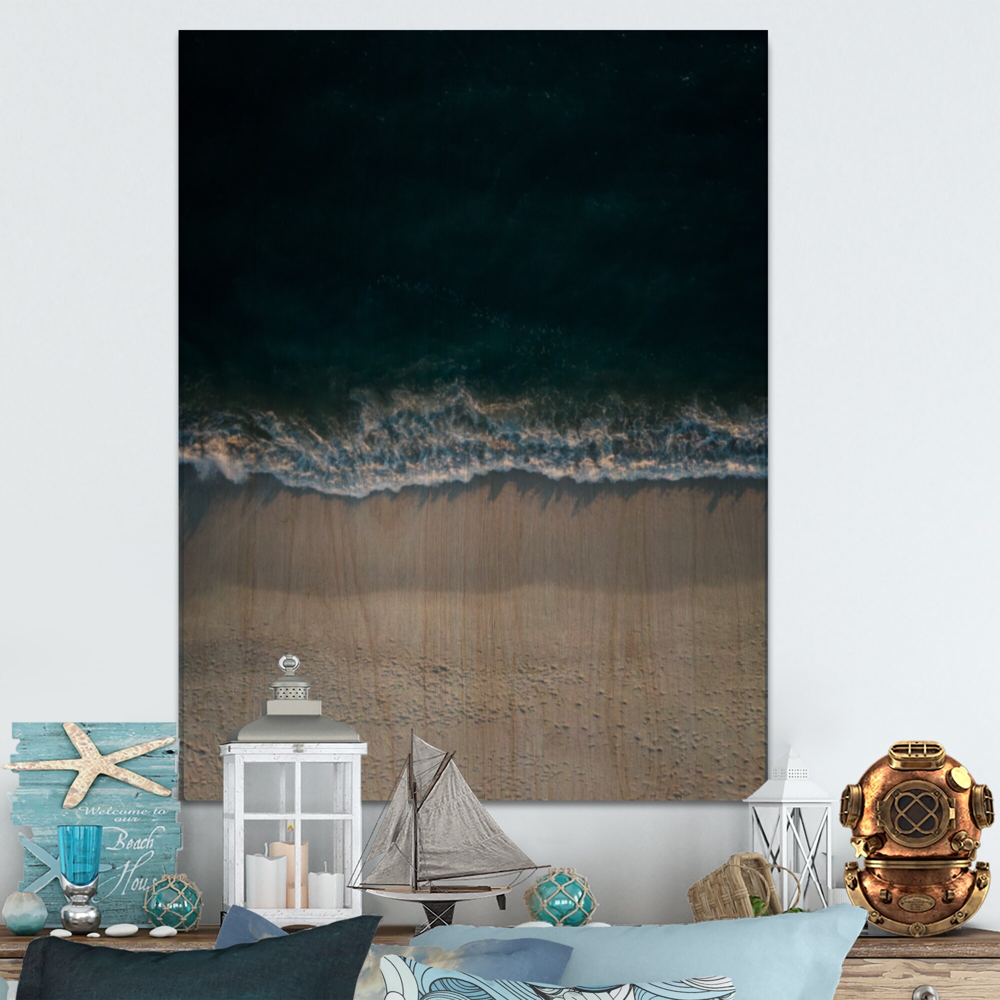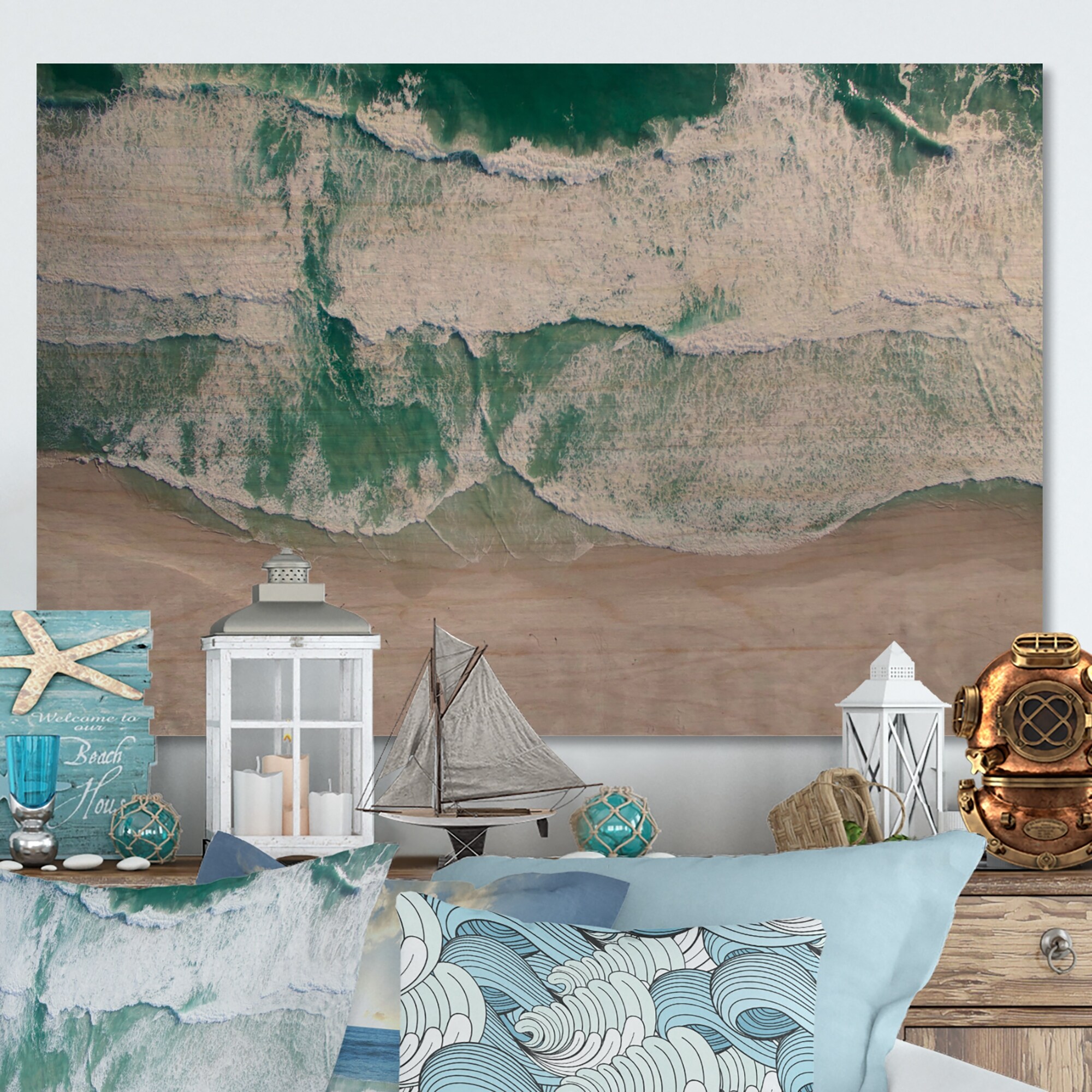 Designart 'Ocean Beach Aerial View' Nautical & Coastal Wood Wall Art Décor - Natural Pine Wood