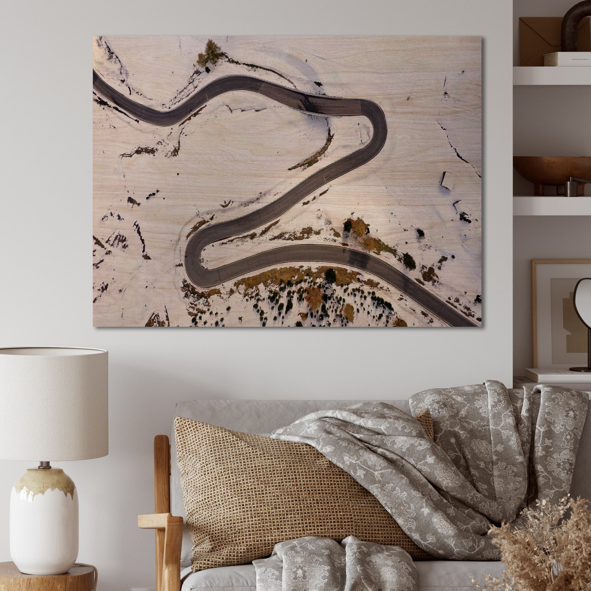 Designart 'Aerial View Windy Road II' Traditional Wood Wall Art Décor - Natural Pine Wood