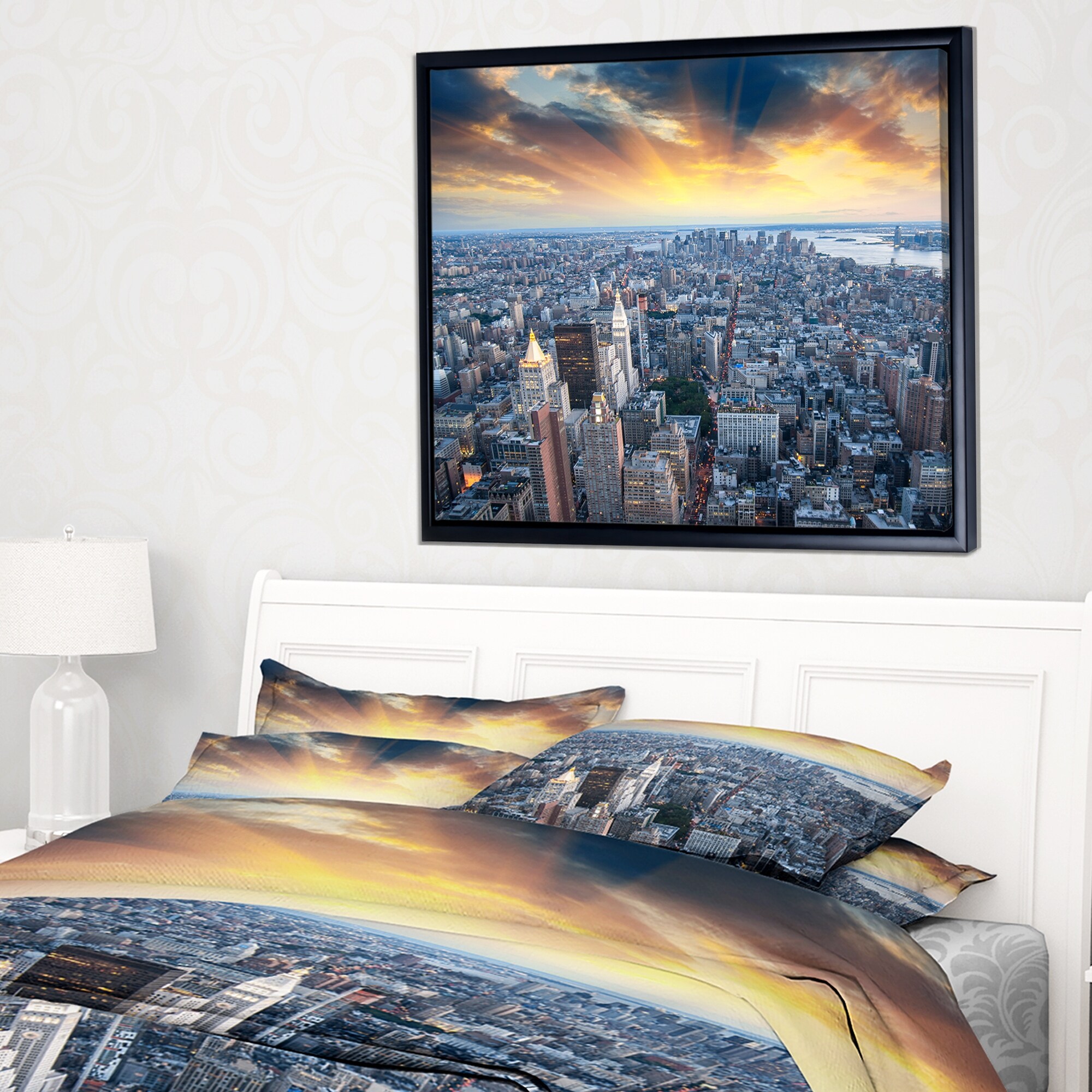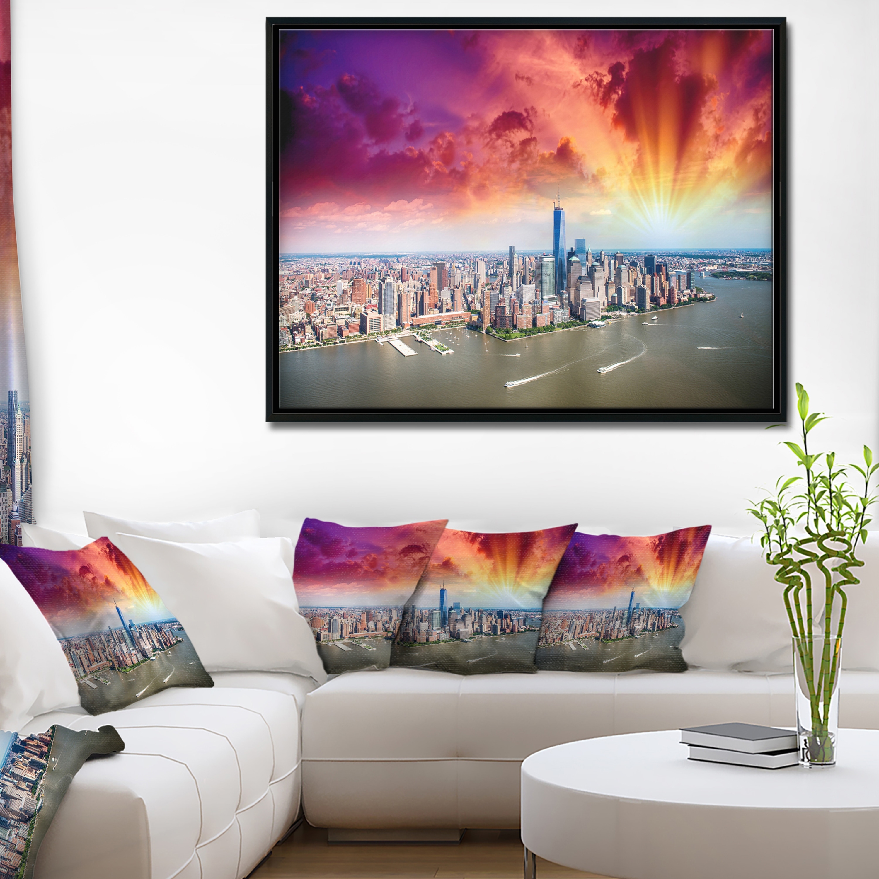 Designart "Colorful New York Skyline Aerial View" Modern Cityscape Framed Canvas Art Print