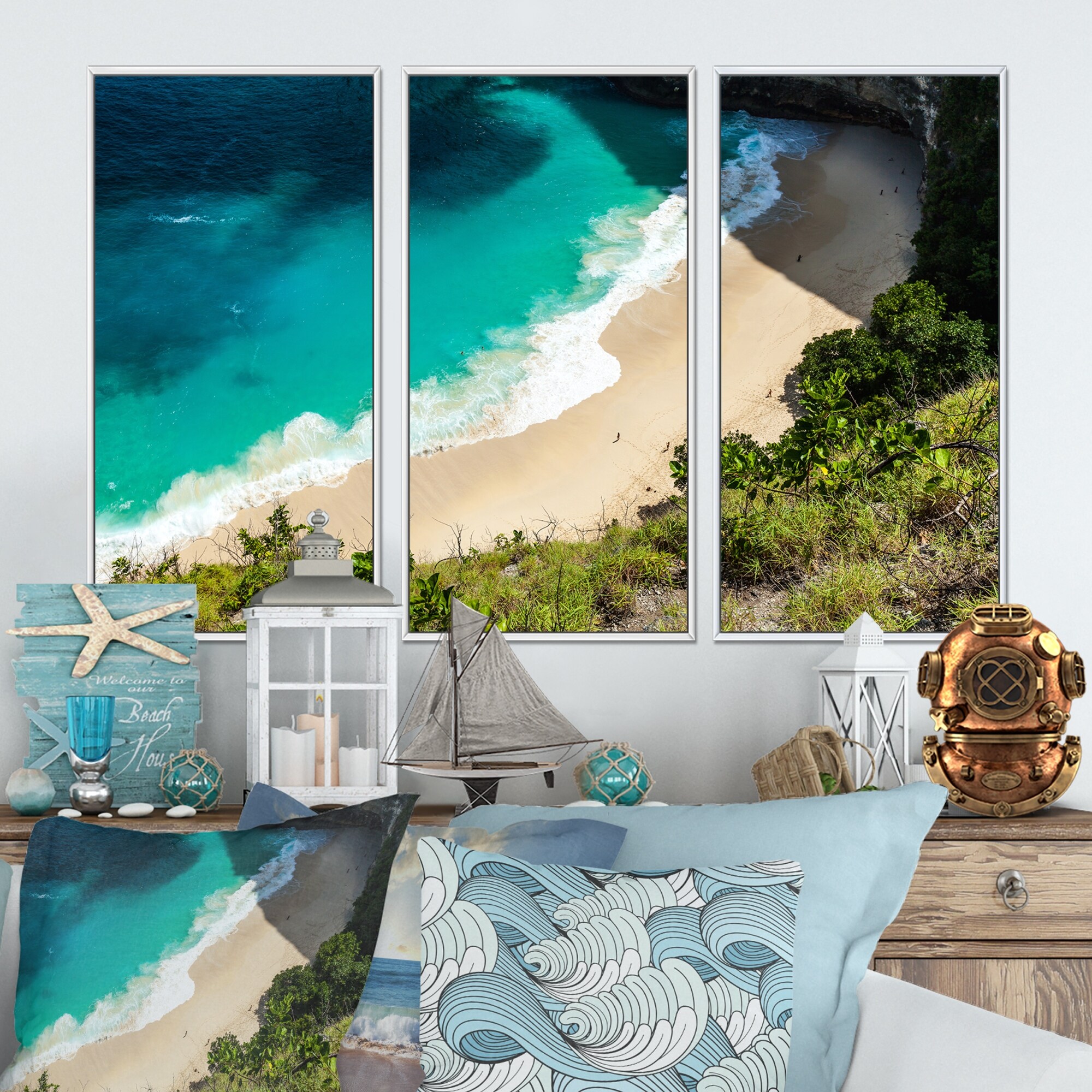 Designart "Aerial View of Tropical Beach II" Nautical & Coastal Framed Canvas Wall Art Print Set of 3 - 4 Colors of Frames