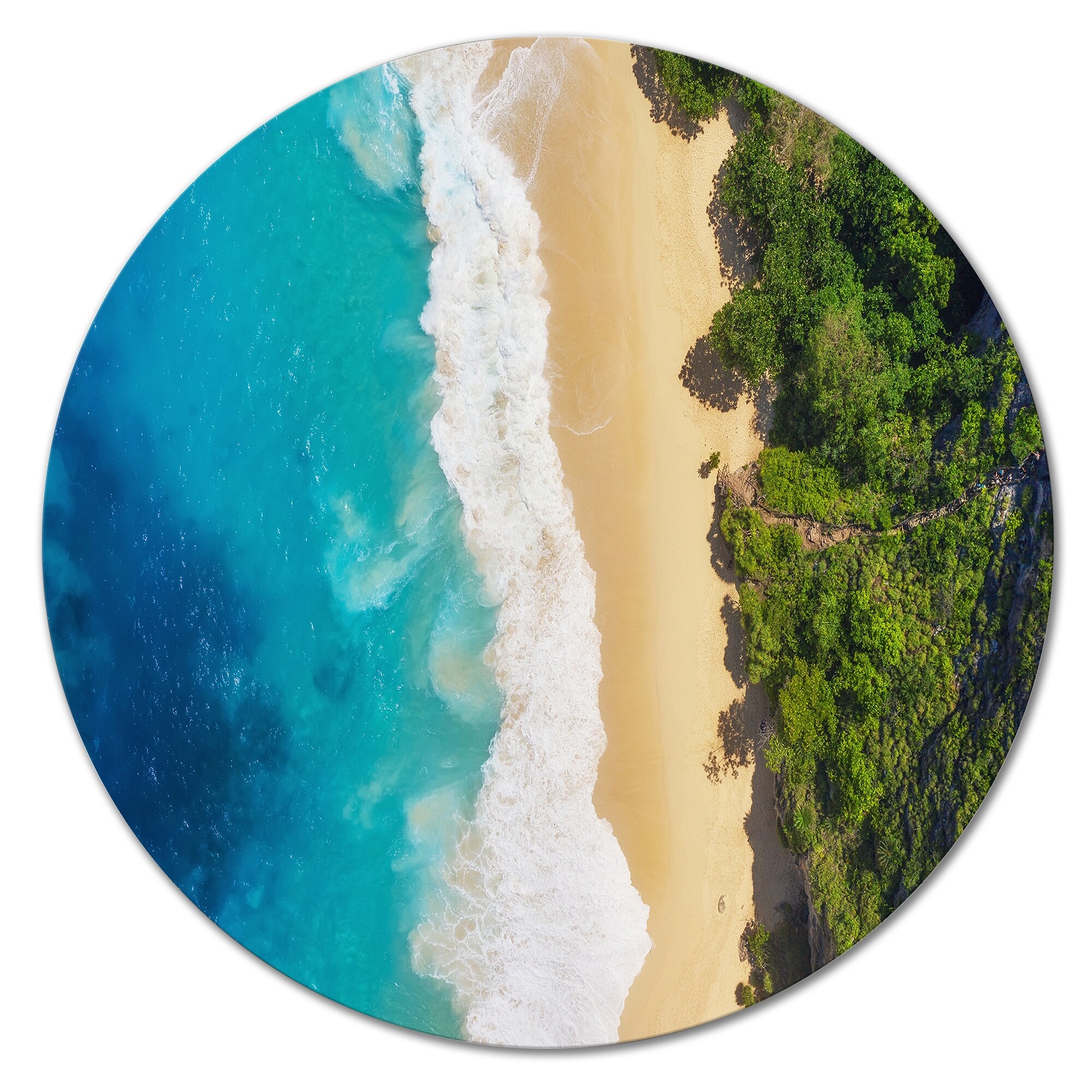Designart 'Aerial View of Sea And Turquoise Beach' Nautical & Coastal Metal Circle Wall Art