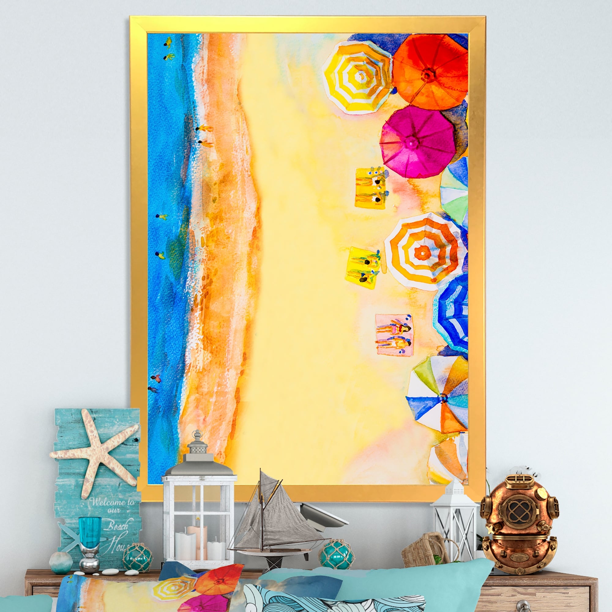 Designart "Turquoise Tropical Beach Aerial View III" Nautical & Coastal Framed Canvas Wall Art Print