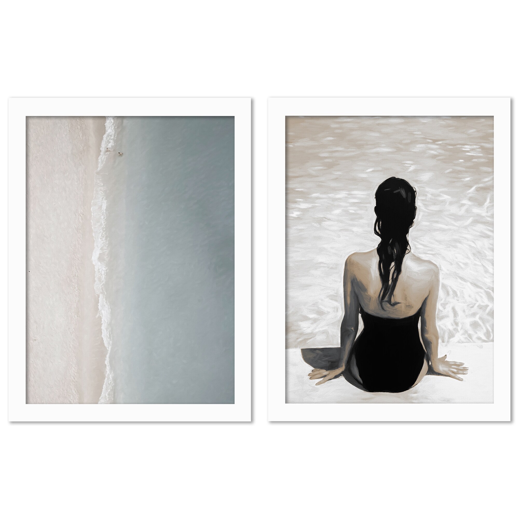 Aerial Beach 2 Piece White Framed Print Wall Art Set