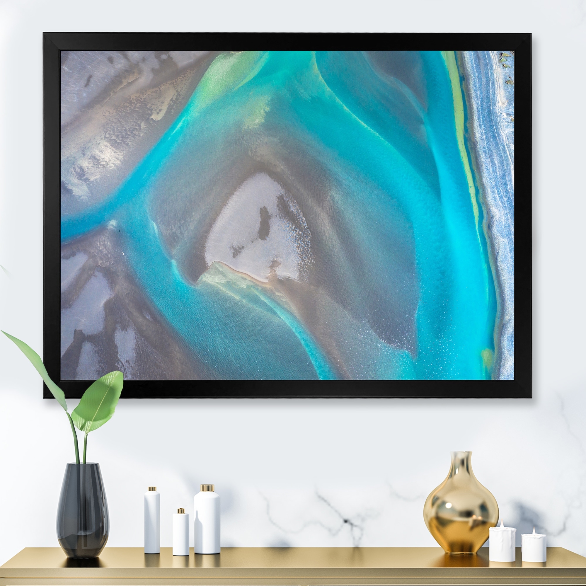 Designart "Aerial View of Glacier Rivers Iceland I" Traditional Framed Art Print