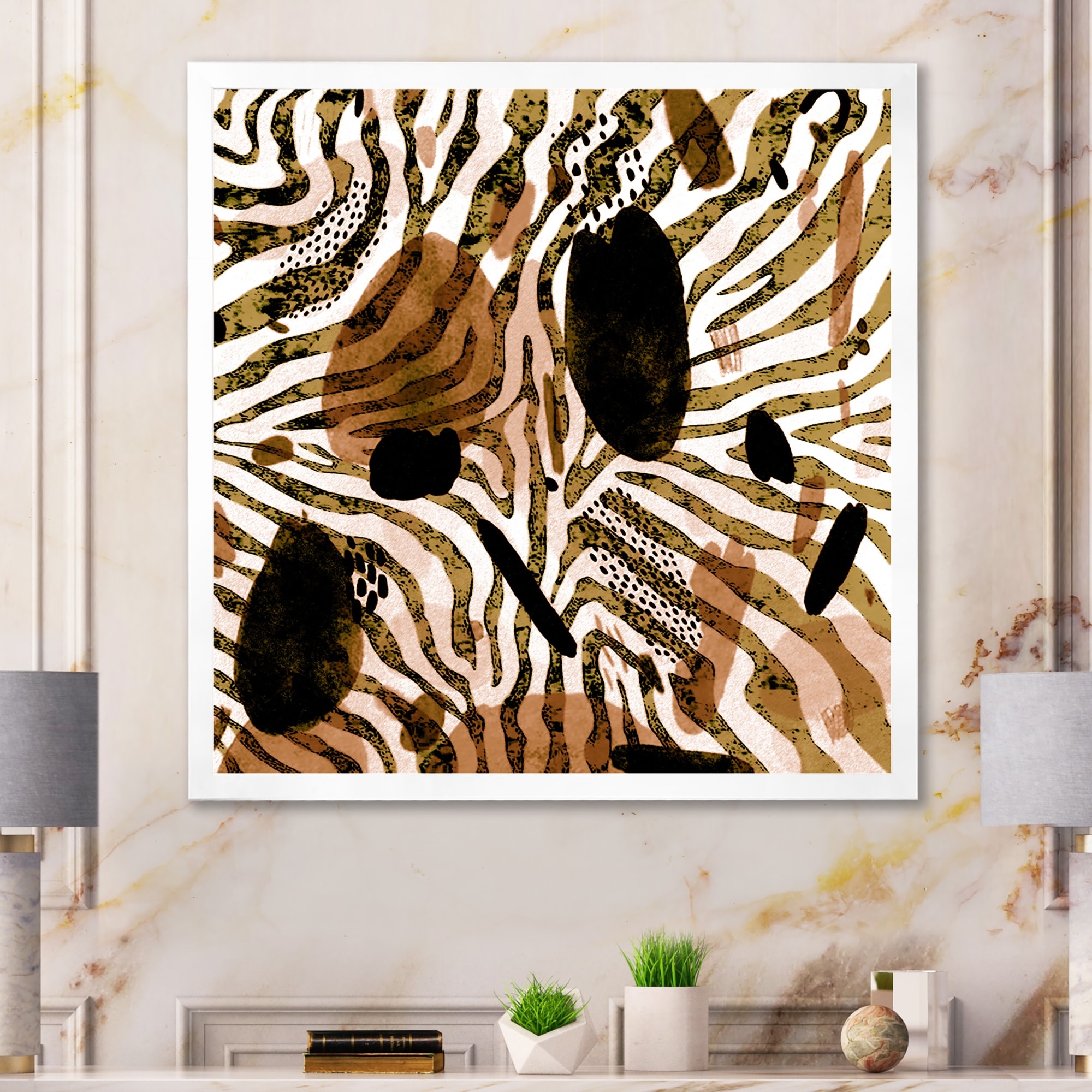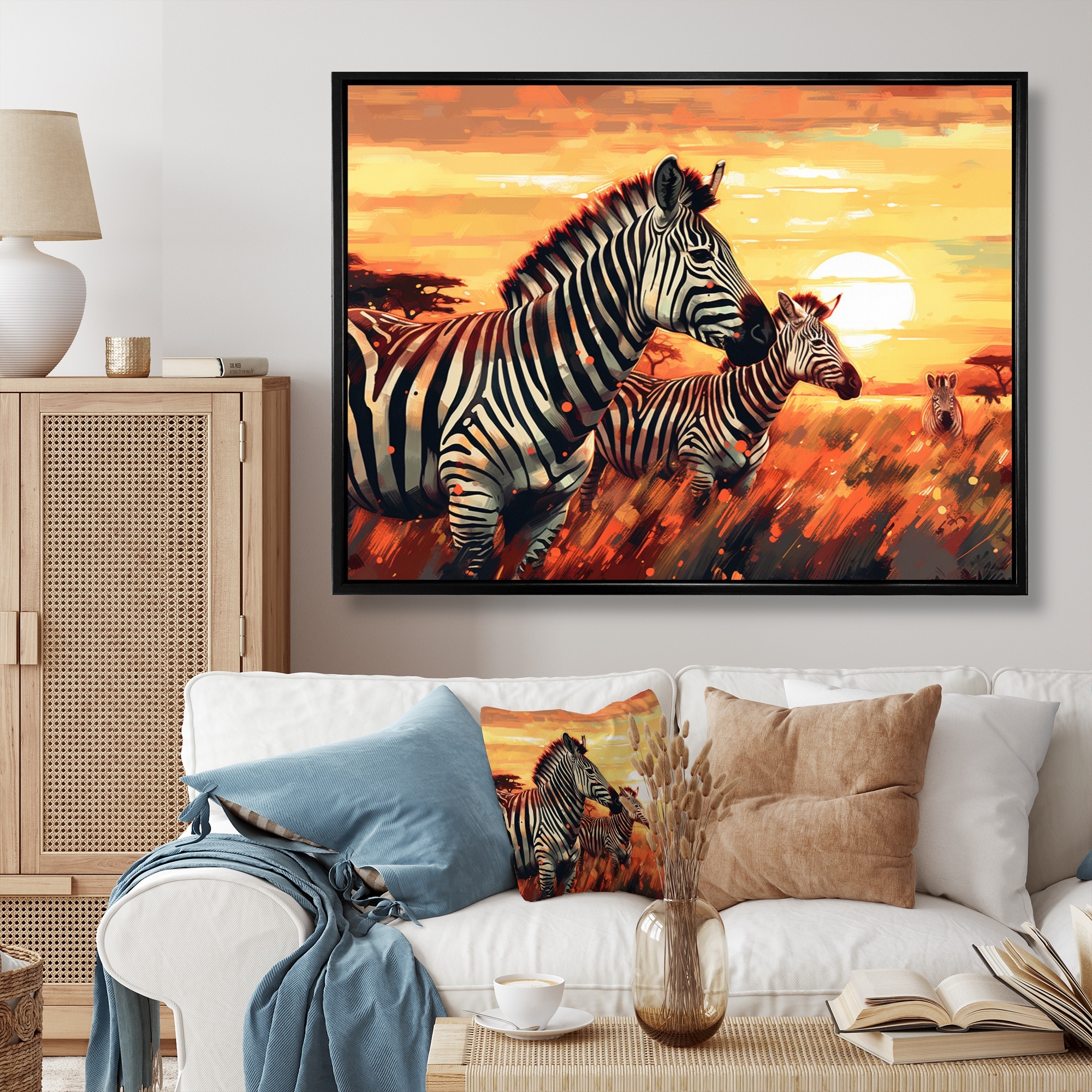 Designart "Orange African Zebra Safari I" Animals Elephant Framed Wall Art for Living Room