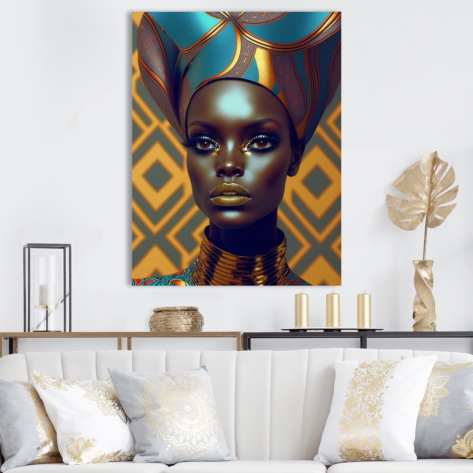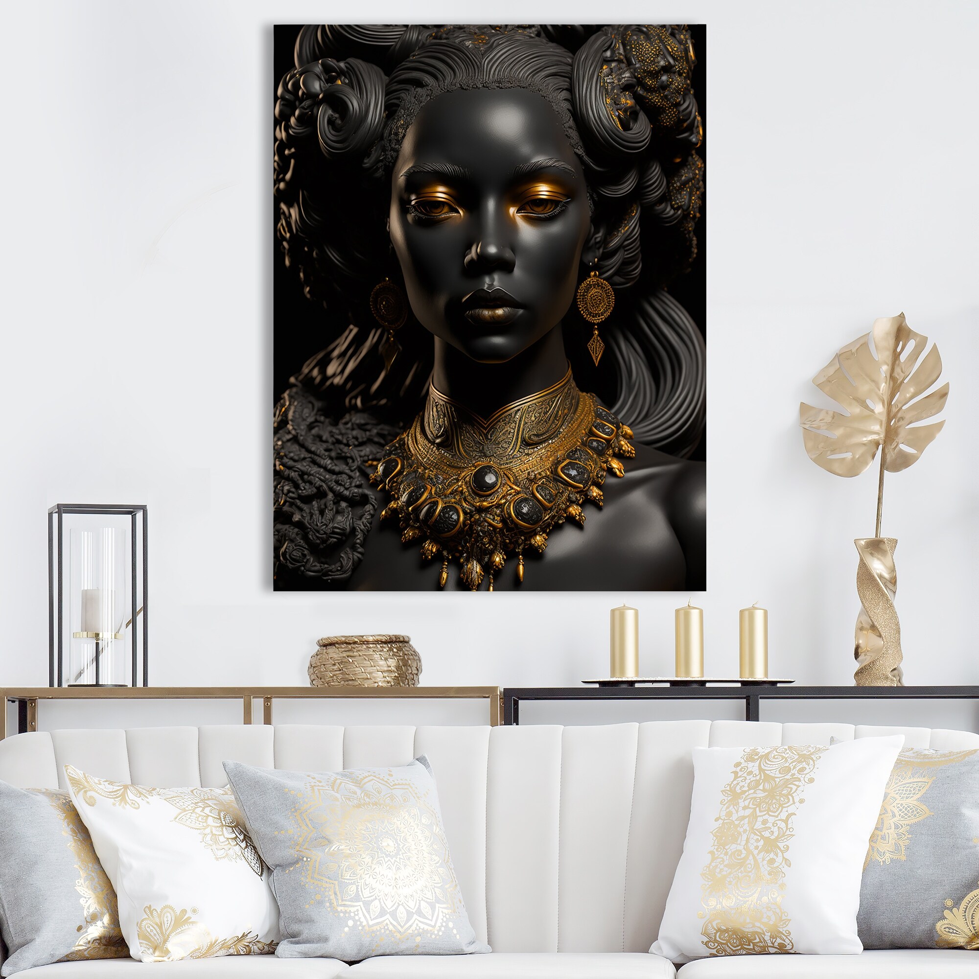 Designart "Close-Up Black And Gold African Goddess VIII" African American Woman Wall Decor