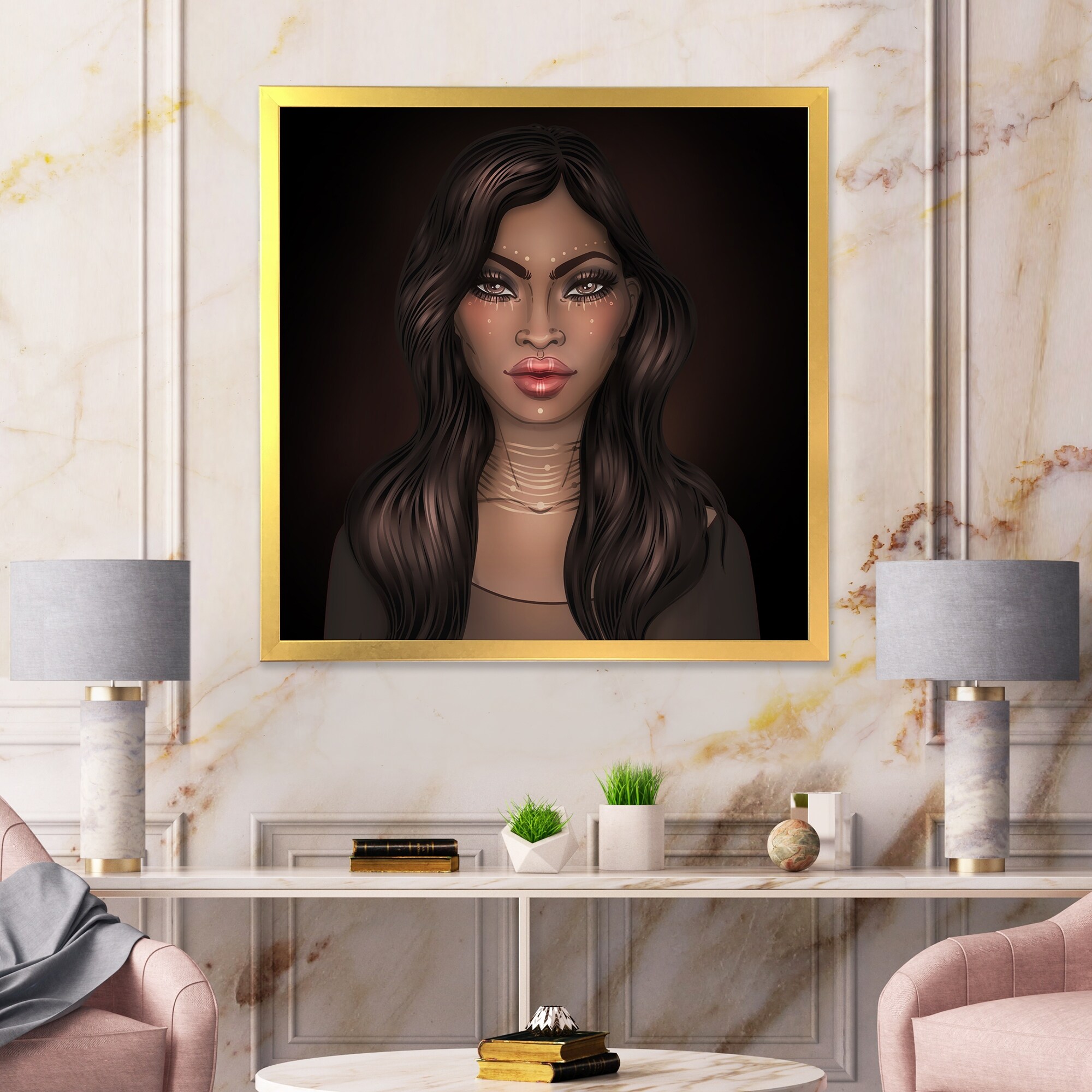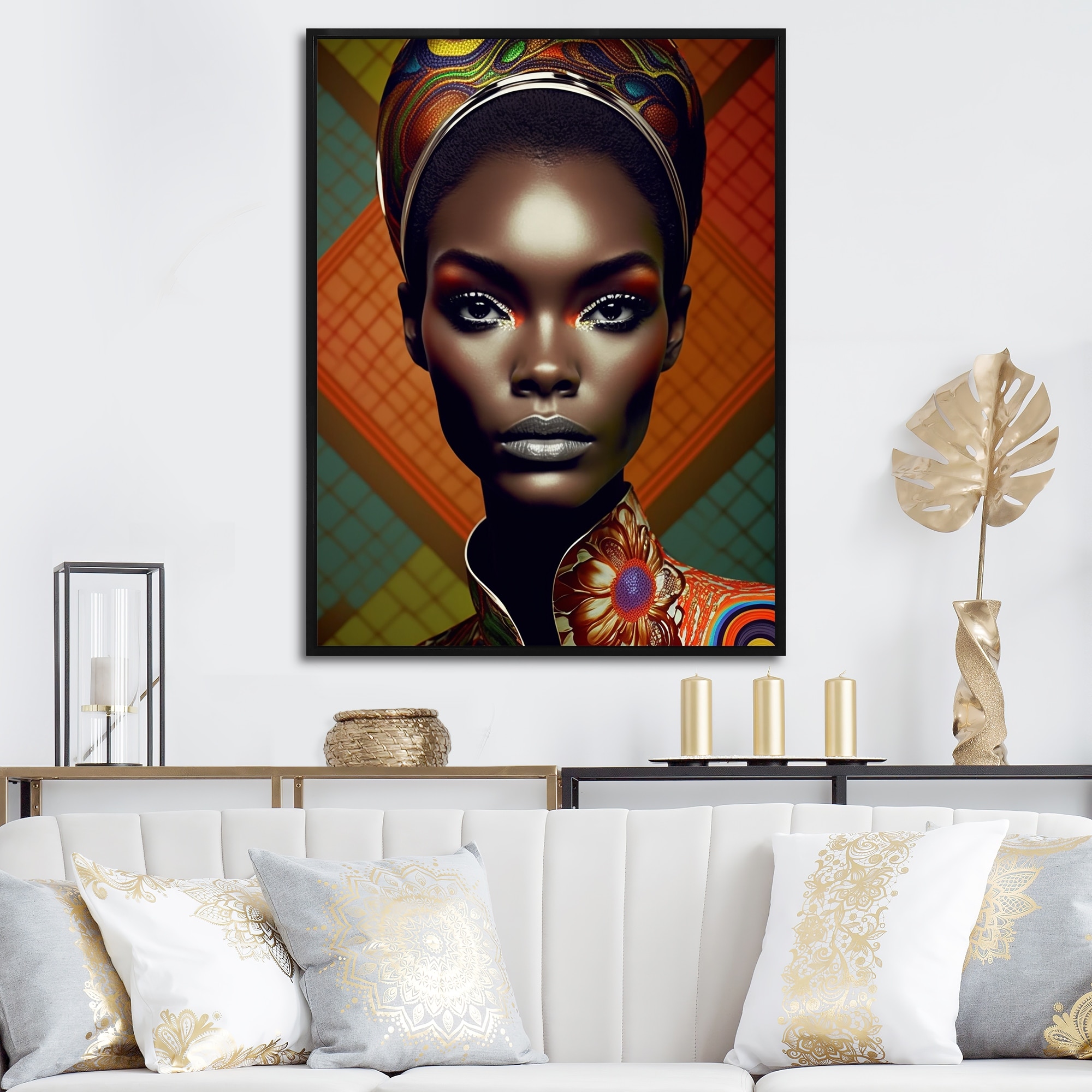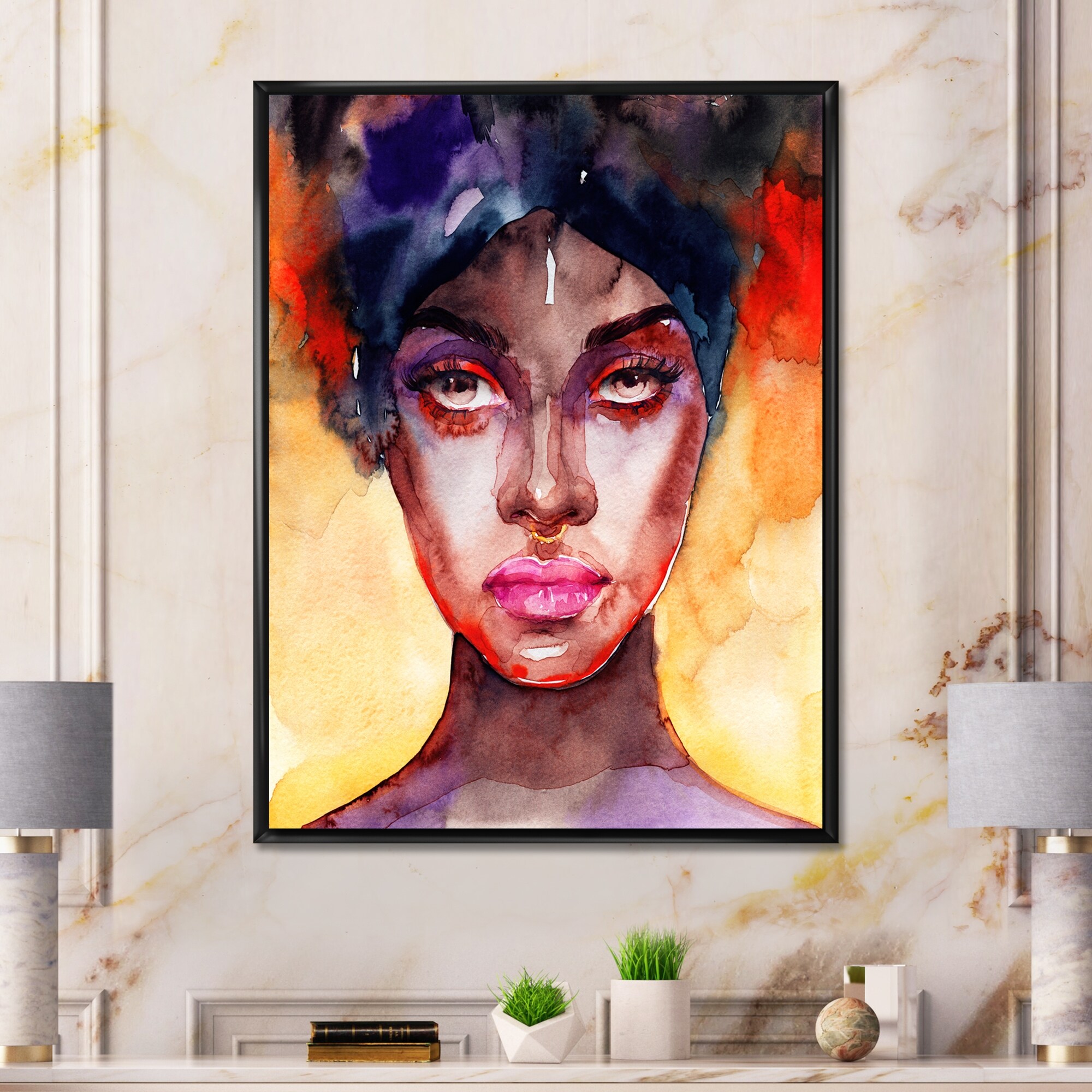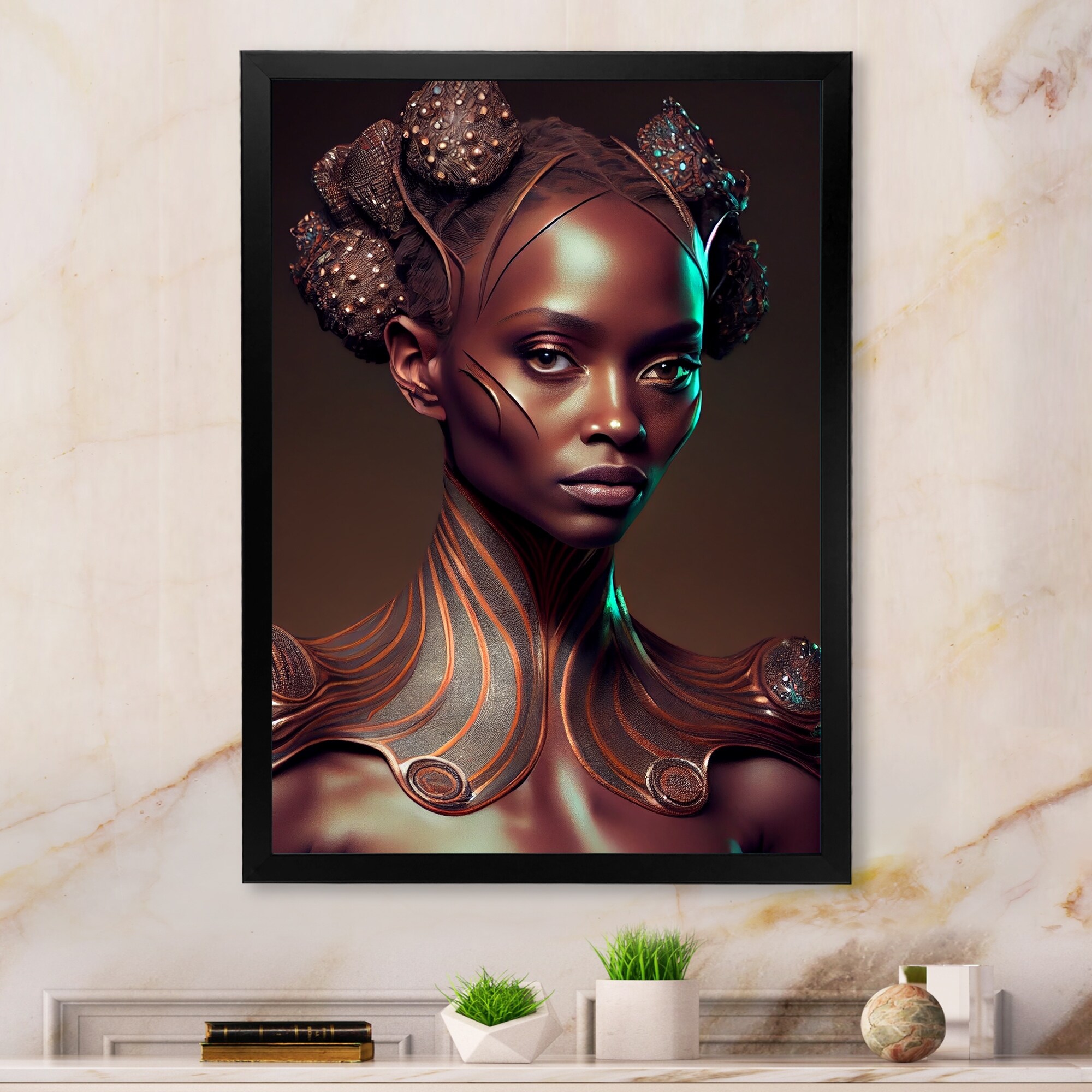 Designart "Classy Portrait of Elegant African Lady VI" African American Framed Canvas Wall Art Print