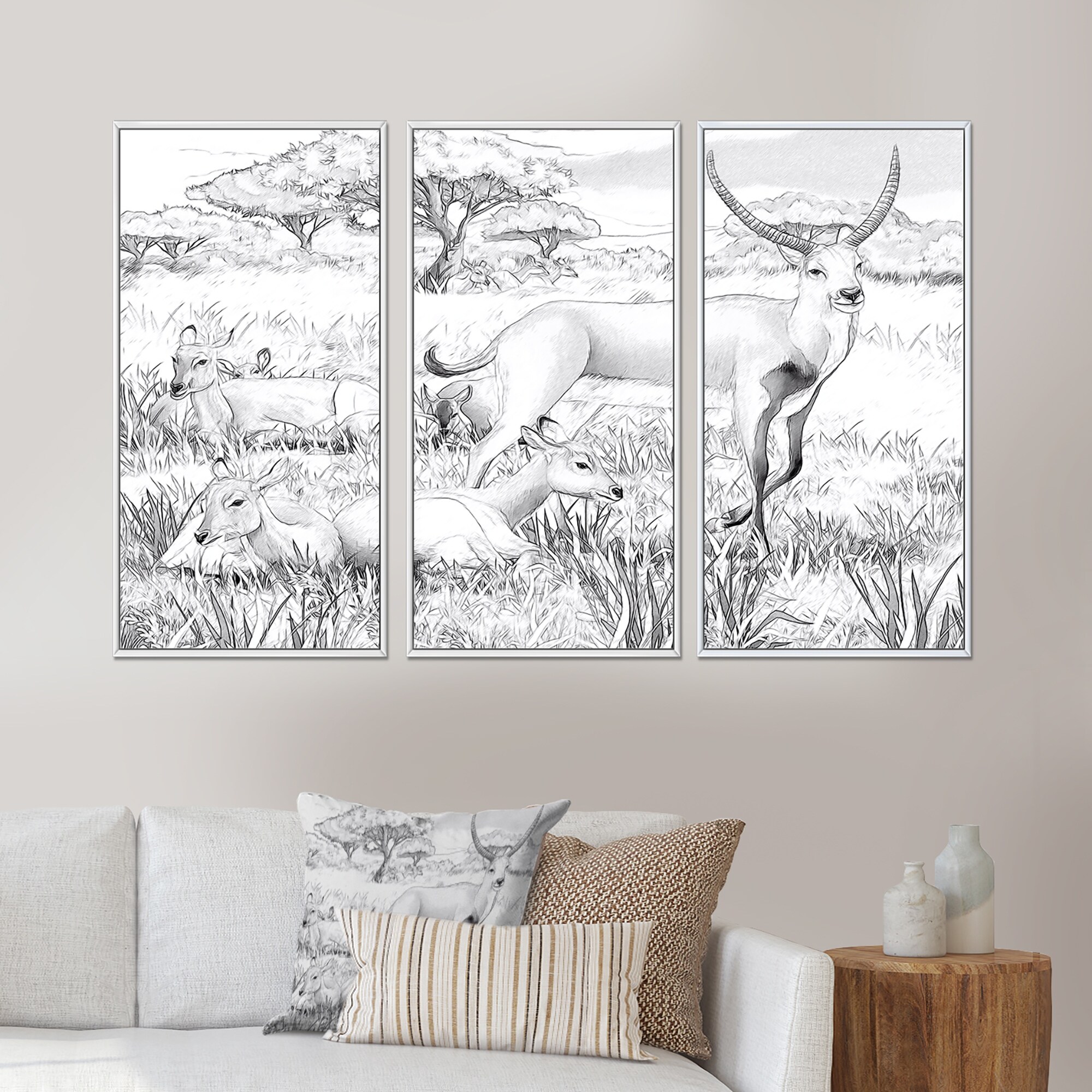 Designart "Koba Lychee in African Safari" Traditional Framed Wall Decor Set of 3 - 4 Colors of Frames