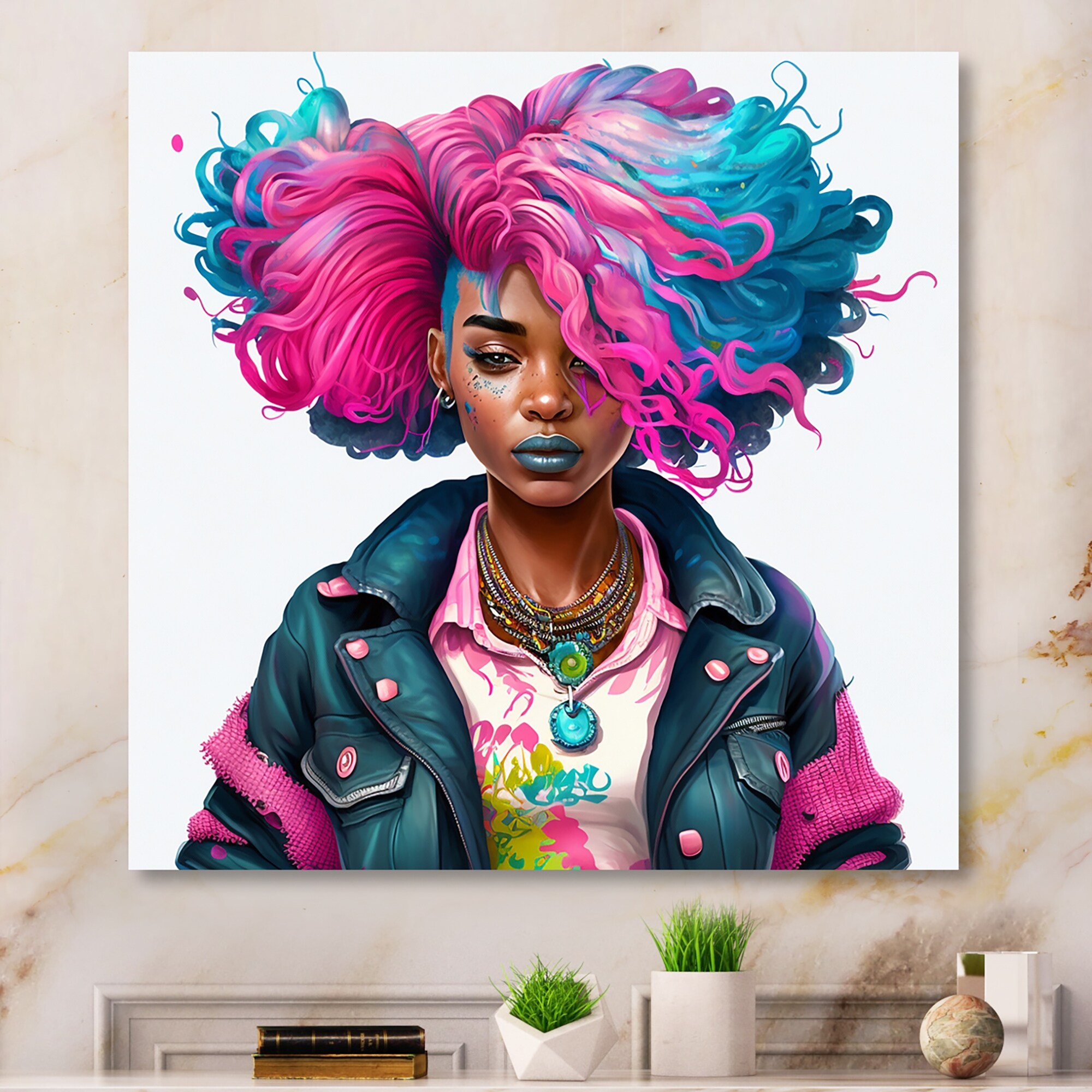 Designart 'Pink And Blue African American Woman IV' African American Woman Metal Wall Art
