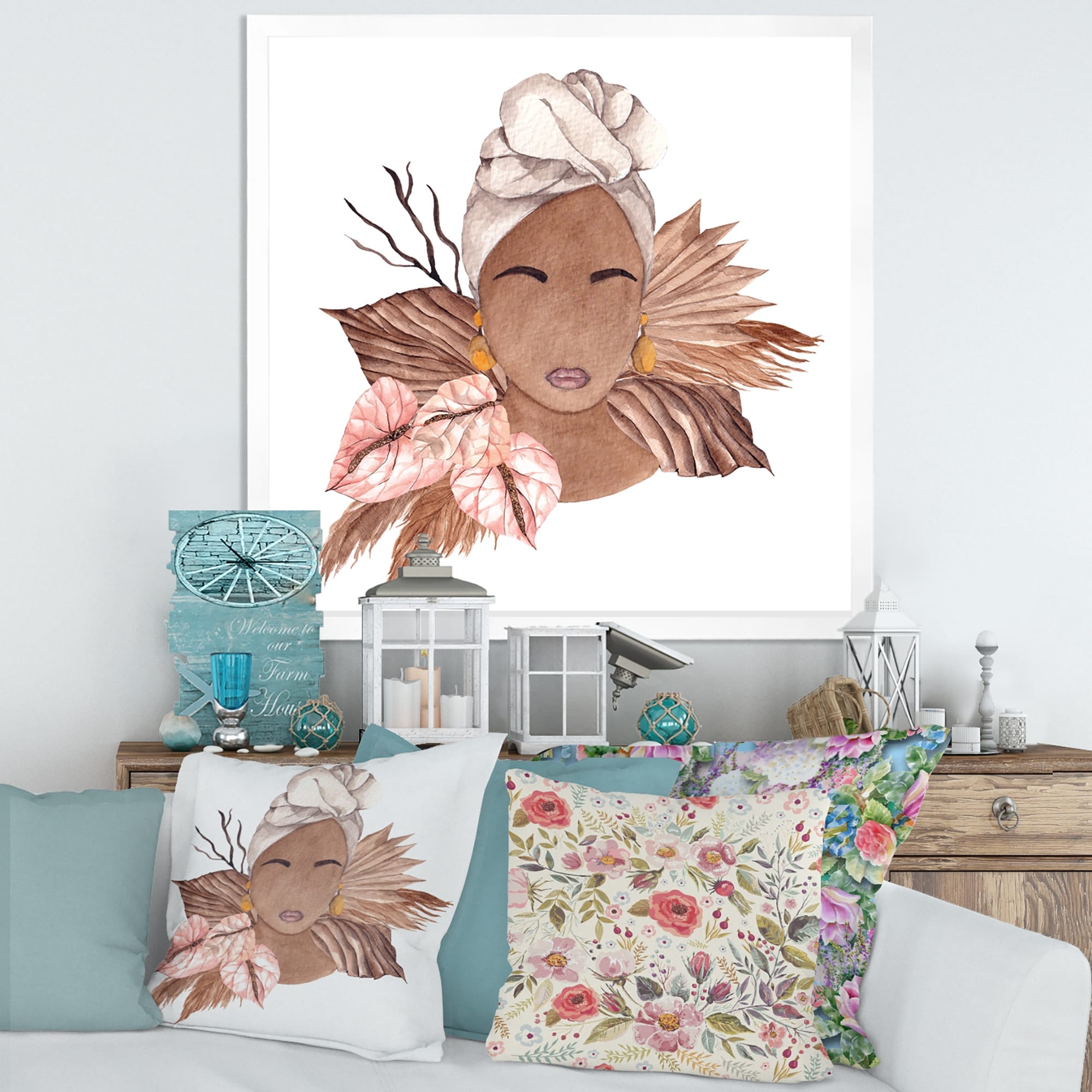 Designart "African Woman With Dried Flowers And Leaves VII" Glam Framed Art Print