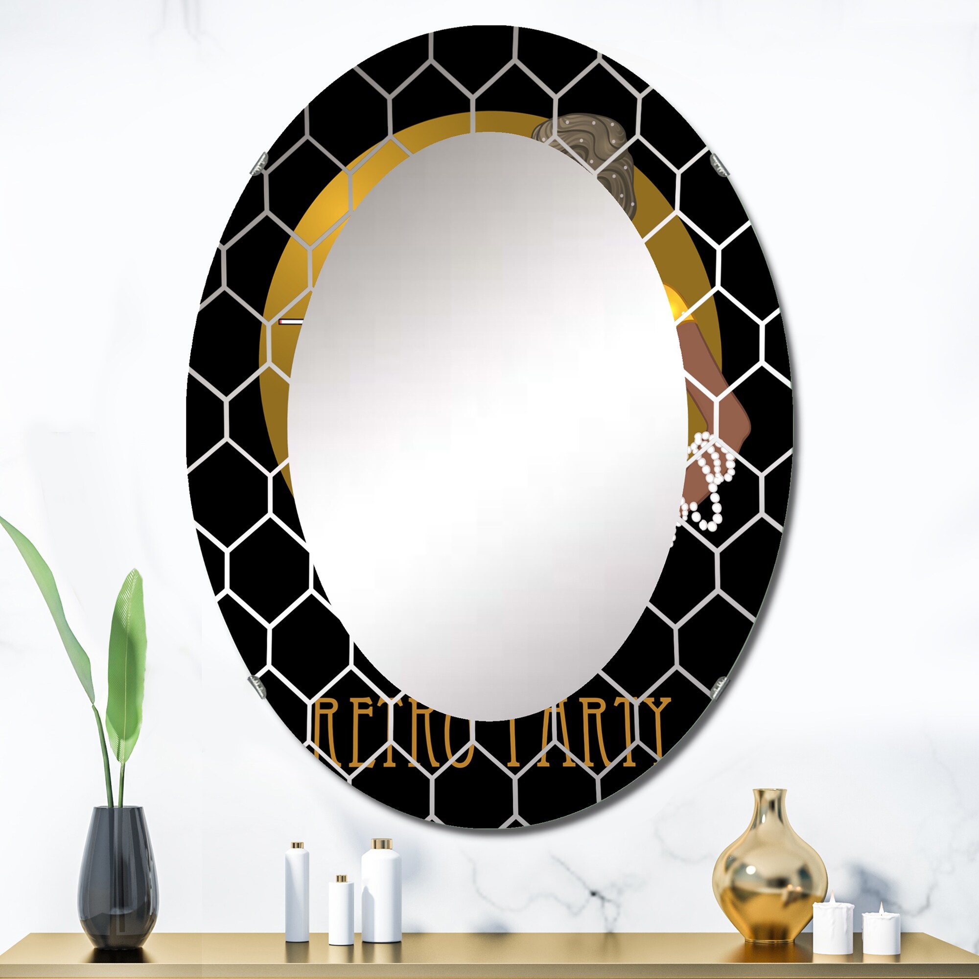 Designart 'Retro Fashion Glamour African American Woman' Printed Modern Wall Mirror