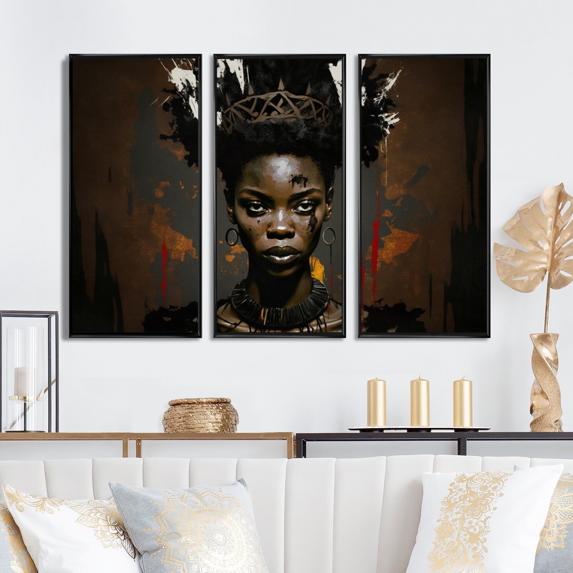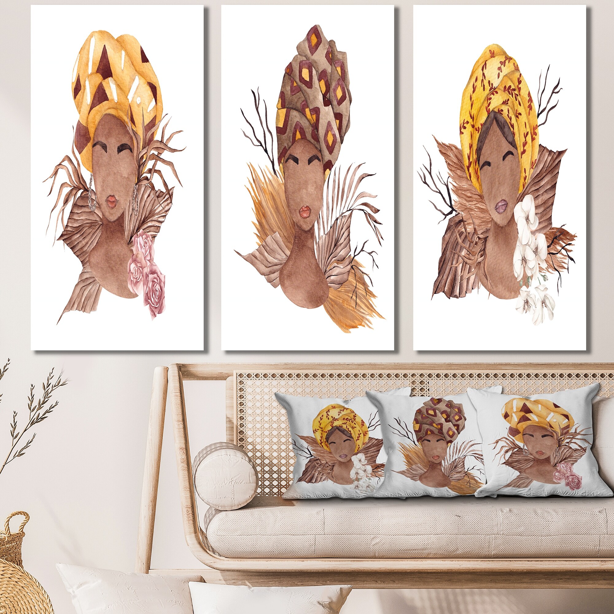 Designart 'African American Woman, Dried Flowers, Leaves III' Glam Art Set of 3 Pieces