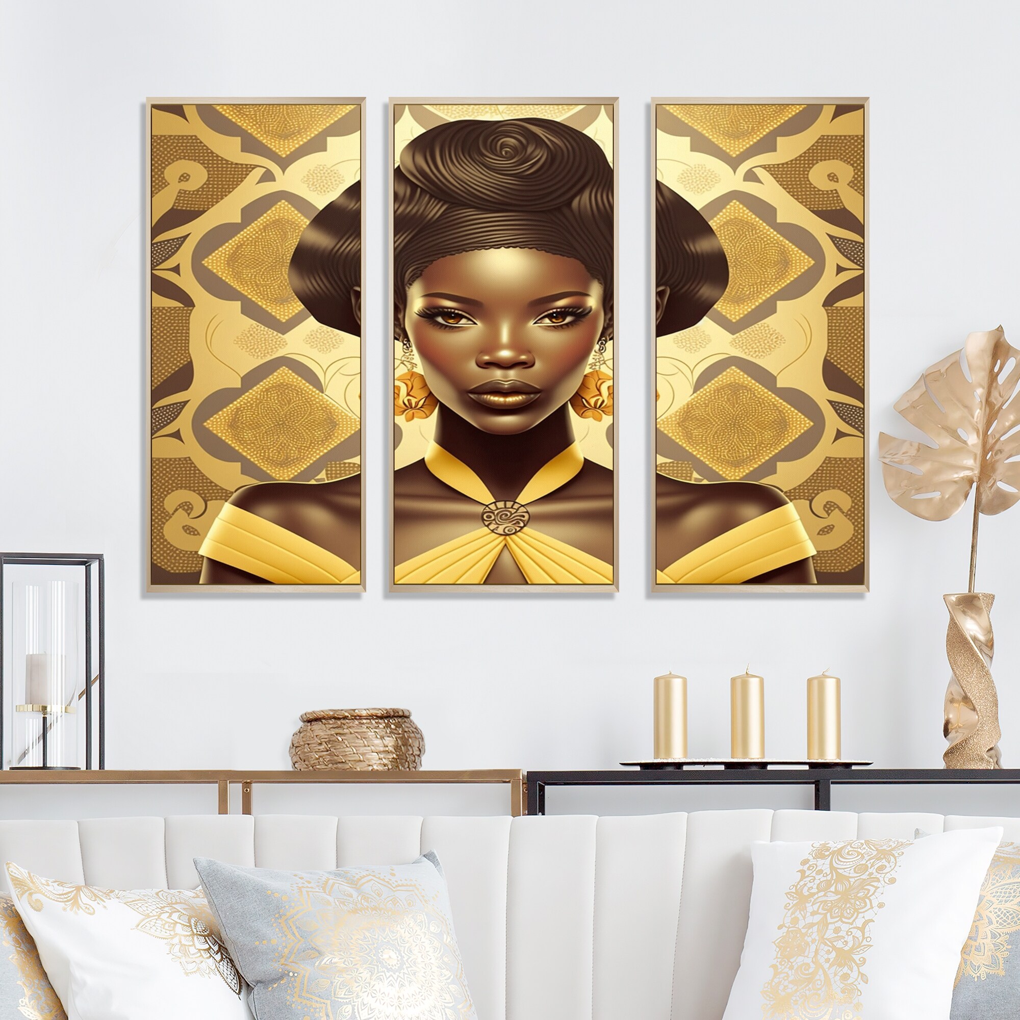 Designart "Portrait Of African American Woman XV" Modern Framed Art Set of 3 - 4 Colors of Frames