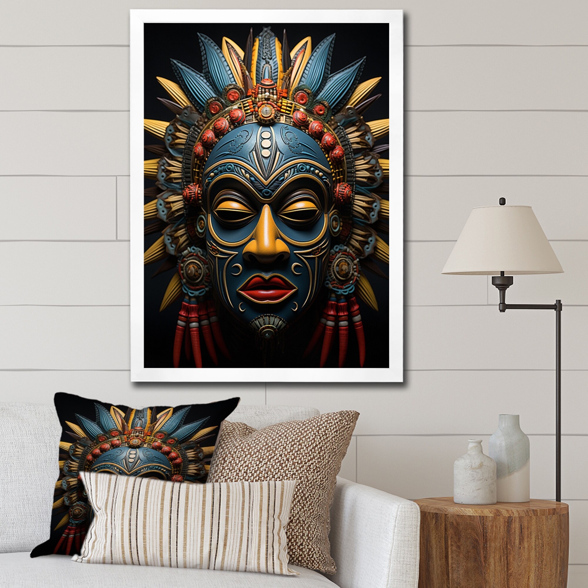 Designart "African Tribal Baule Mask I" African Tribal Framed Wall Art Living Room
