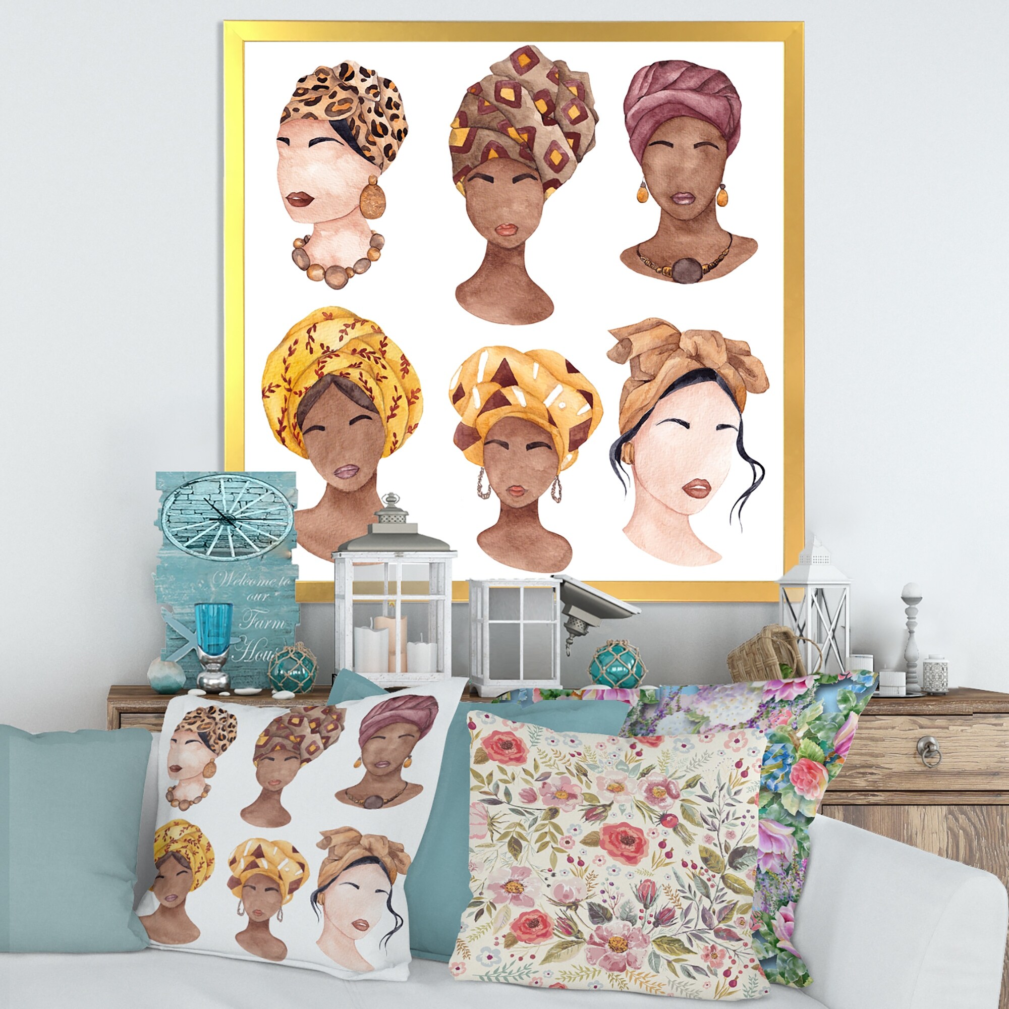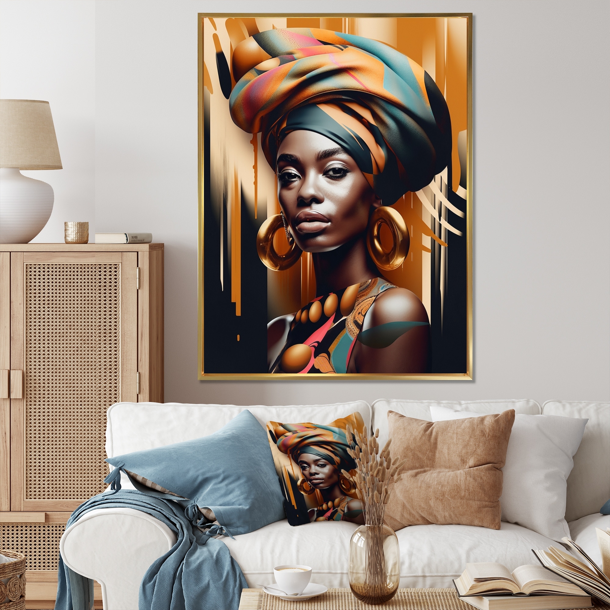 Designart "African American Woman with Turban VI" Modern Framed Art Print