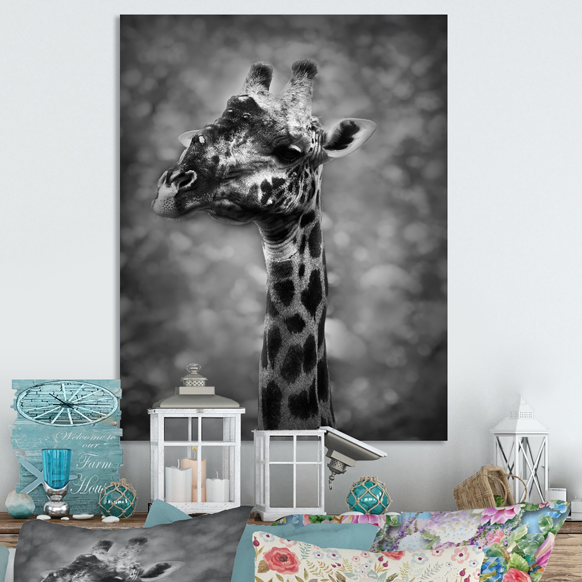 Designart "African Giraffe in Black And White" Traditional Canvas Wall Decor