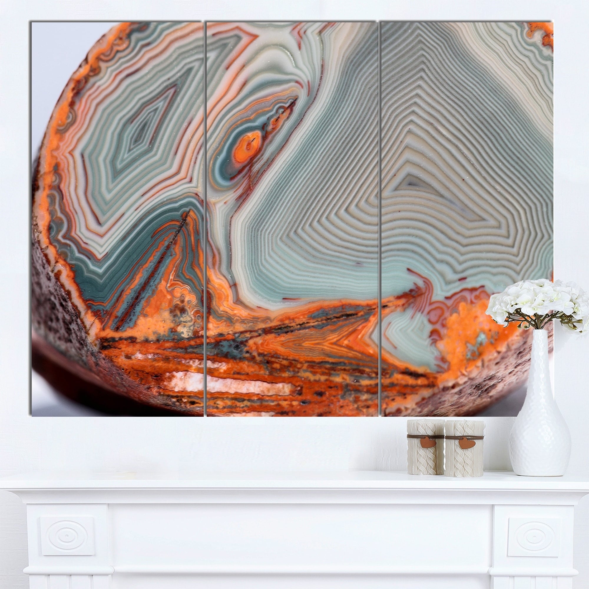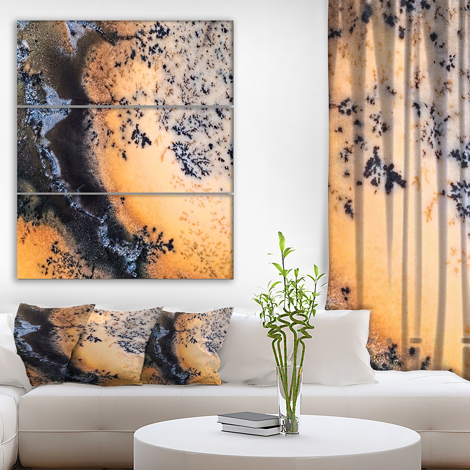 Designart "Moss Agate Close up'Stone Photographic on Wrapped Canvas set - 28x36 - 3 Panels