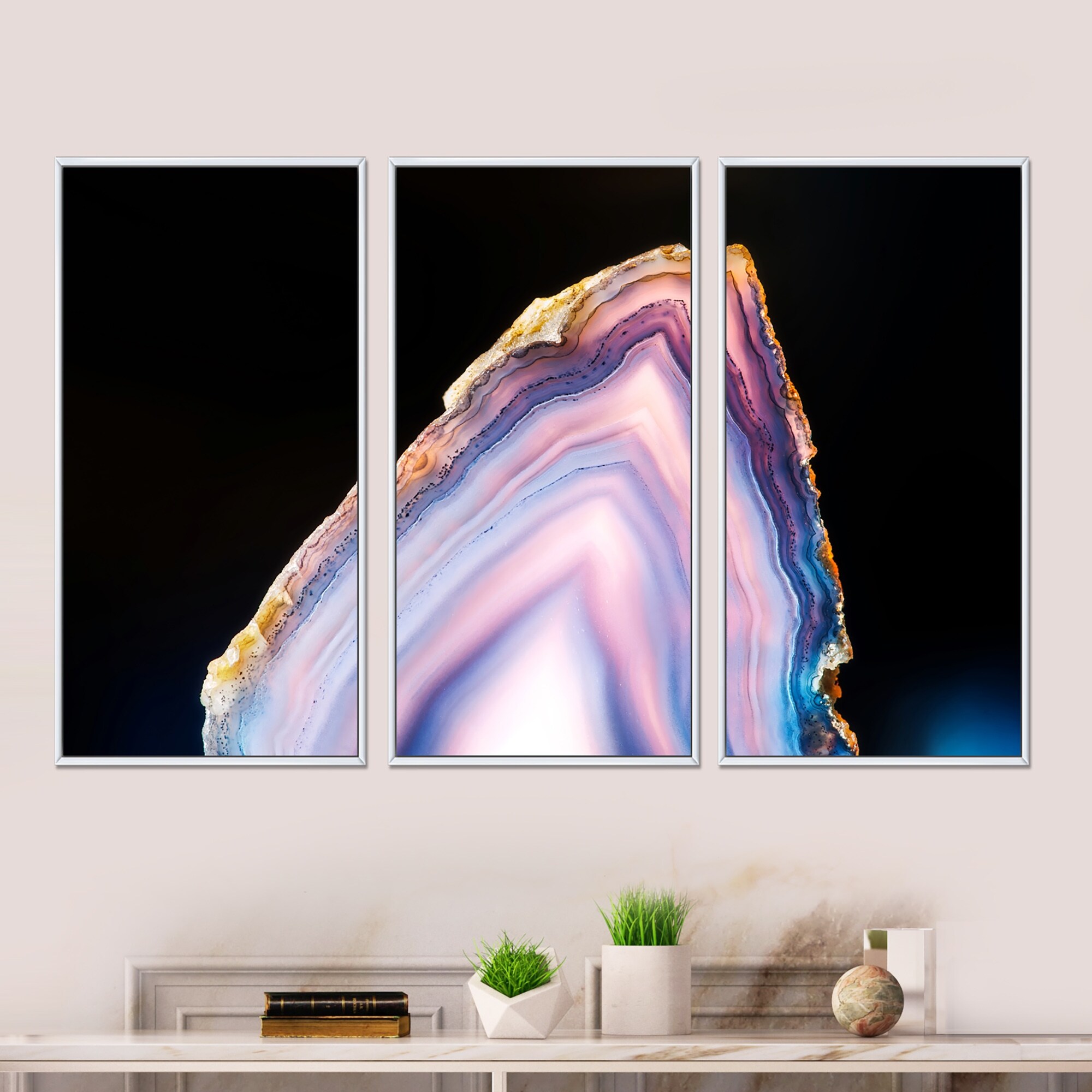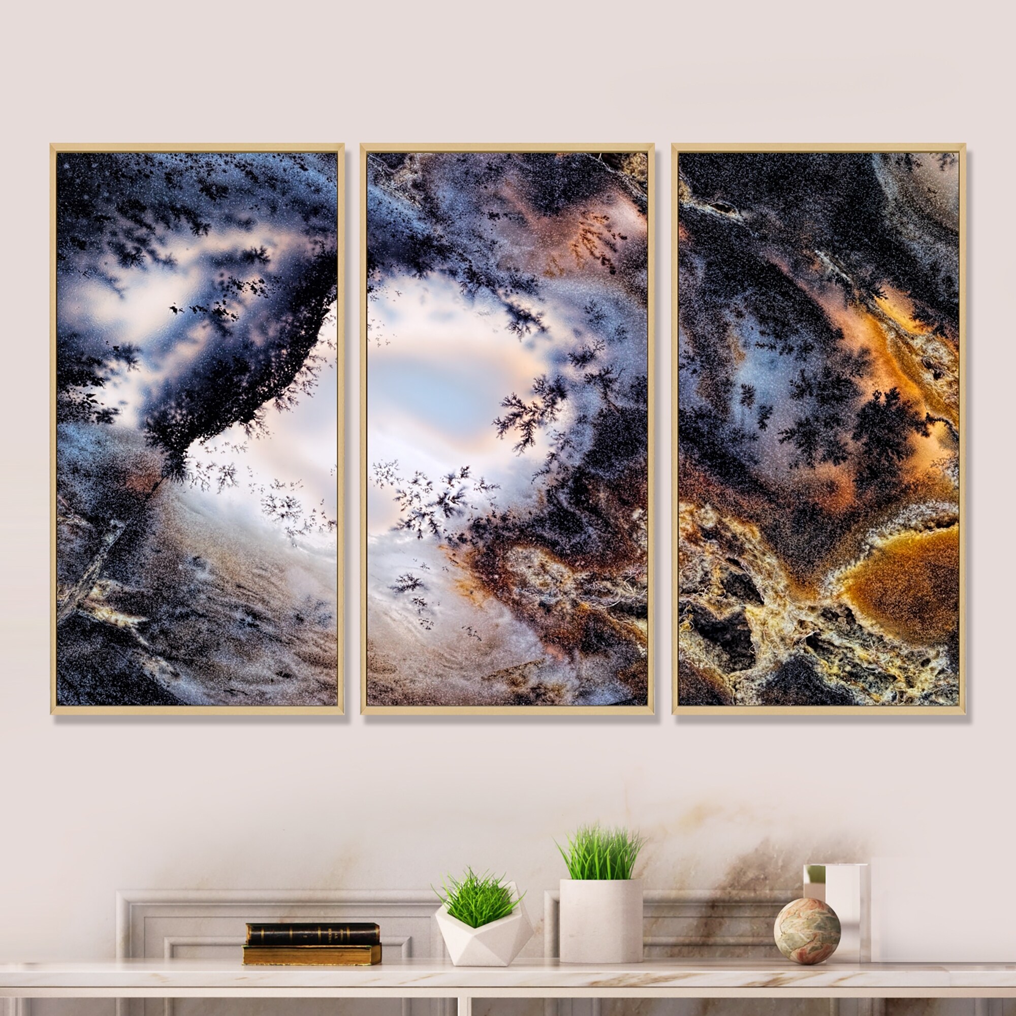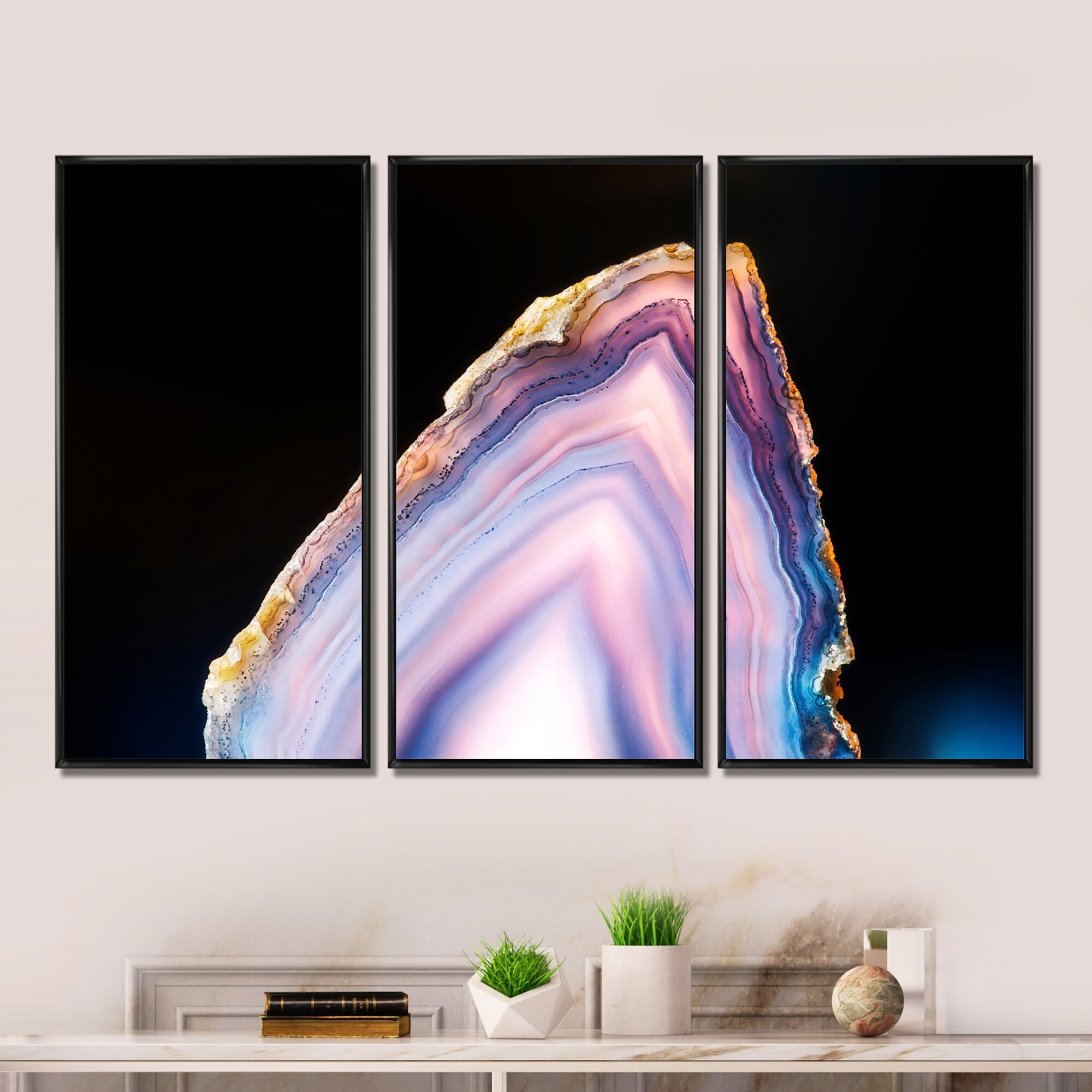 Designart "Beautiful Slice of Agate on Black" Abstract Framed Canvas Wall Art Set of 3 - 4 Colors of Frames