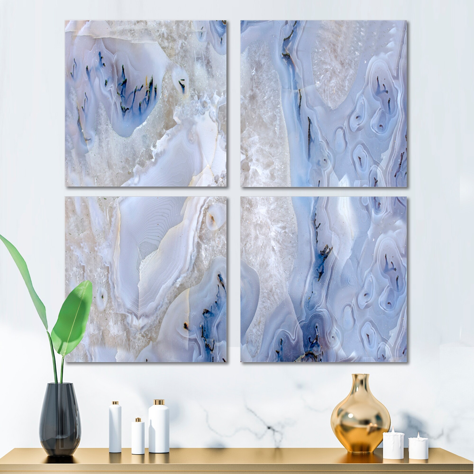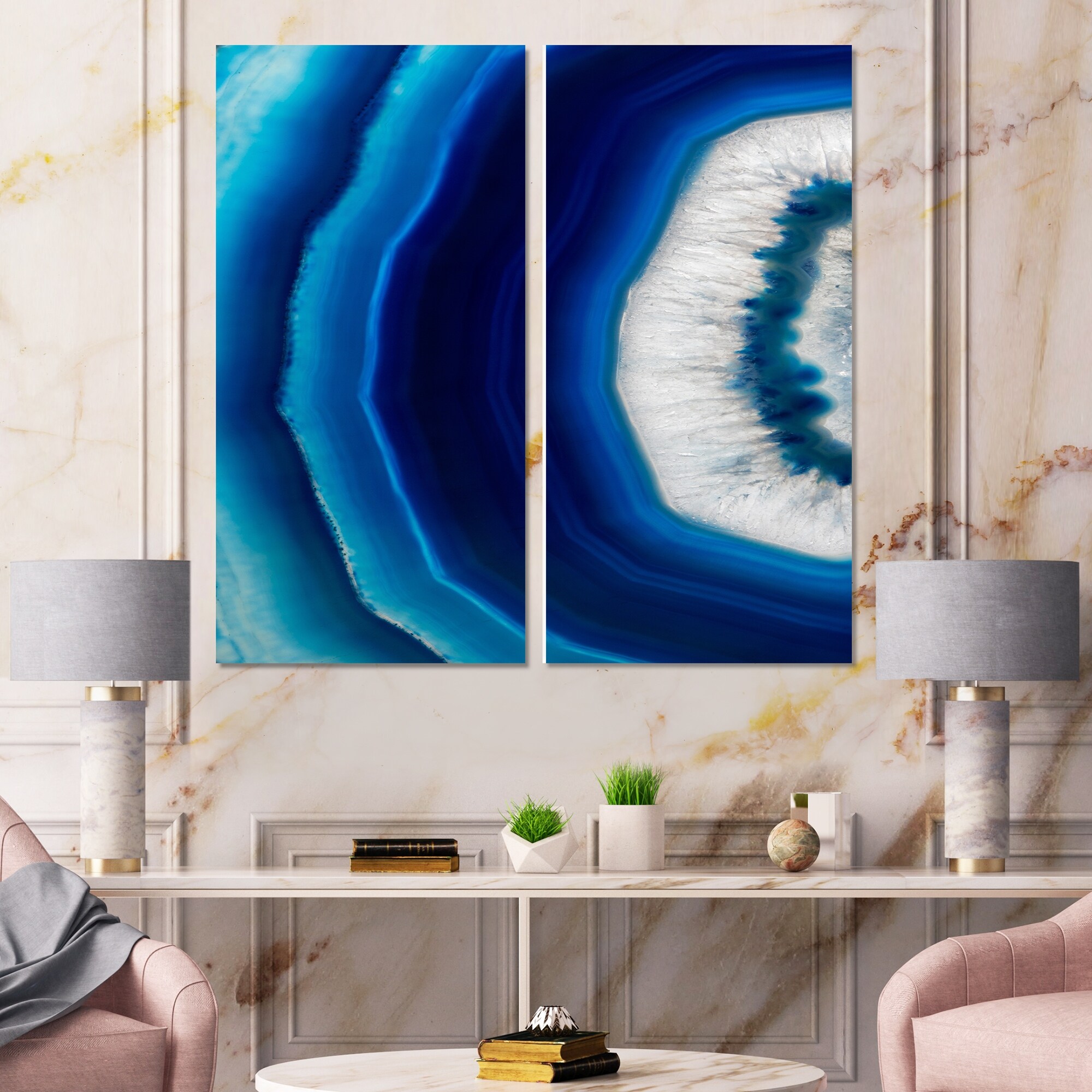 Designart "Blue Agate Crystal" Abstract Canvas Wall Art Print 2 Piece Set