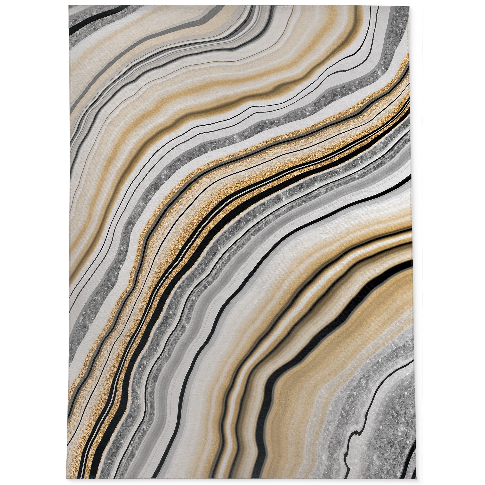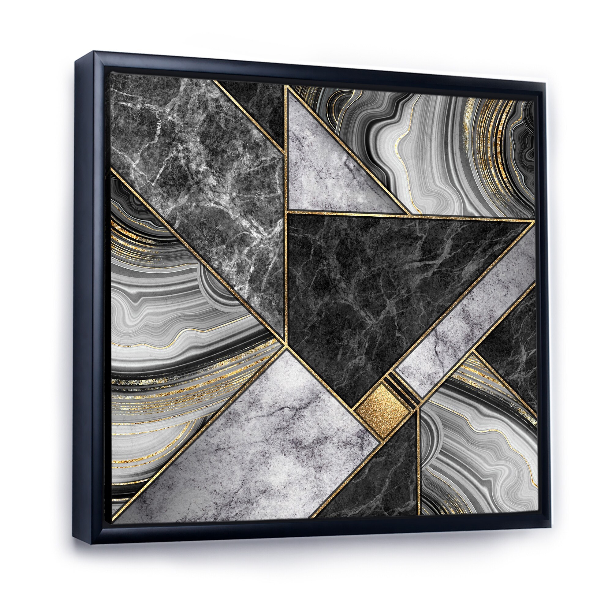 Designart "Marble Granite Agate With Touches of Gold XVIII" Modern Geometric Framed Wall Art Prints