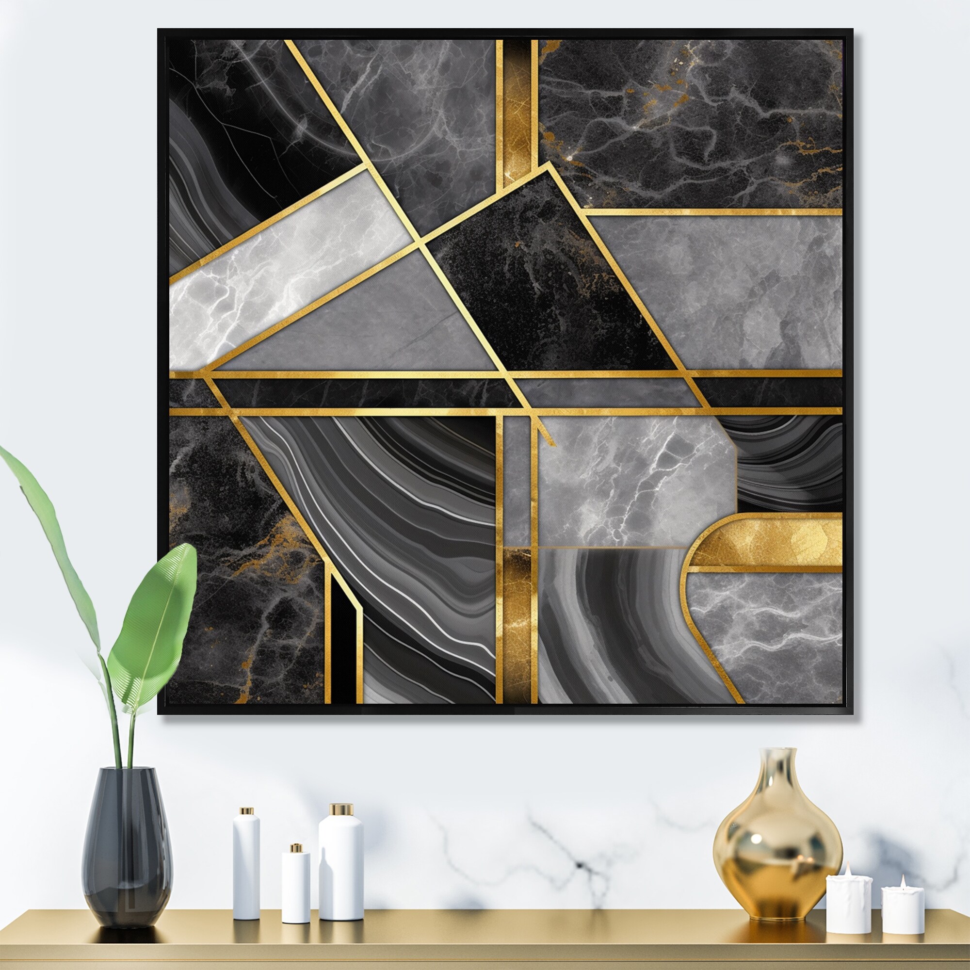 Designart "Marble Granite Agate With Touches of Gold II" Modern Geometric Framed Canvas Prints
