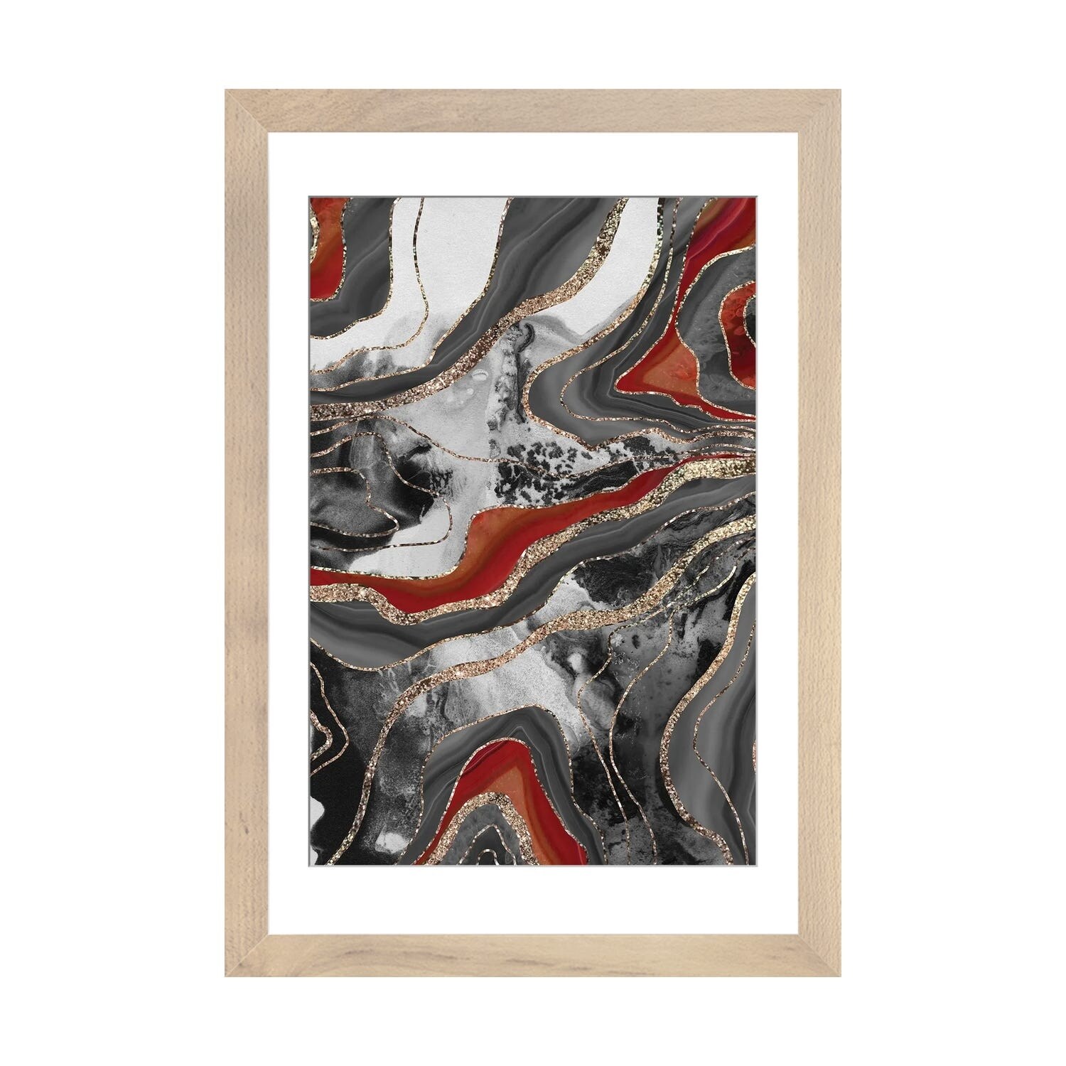 Designart "Red And Black Ethereal Agate" Abstract Marble Framed Wall Art Prints