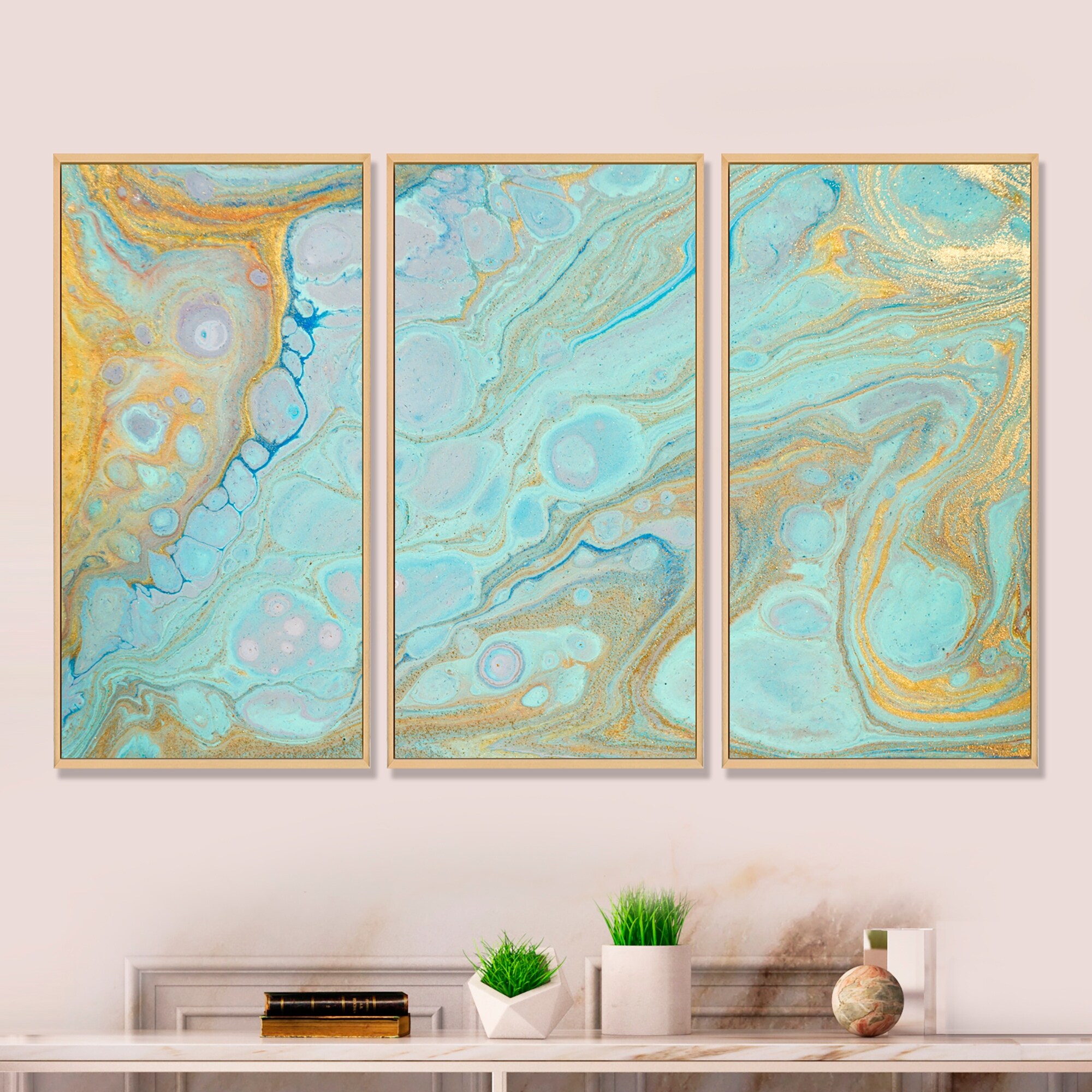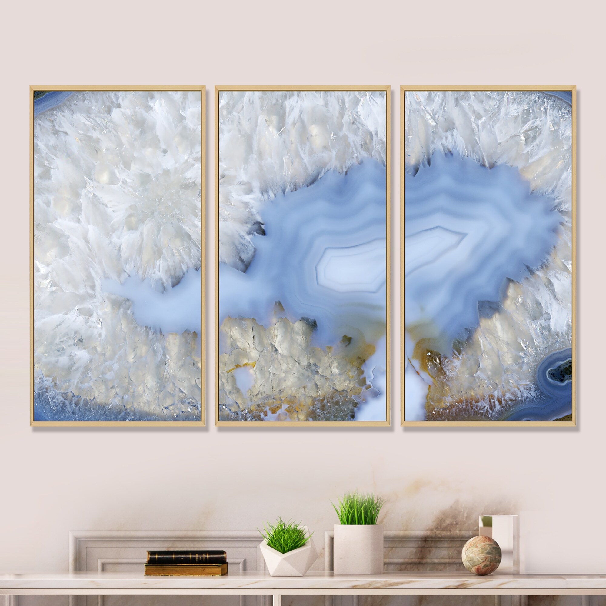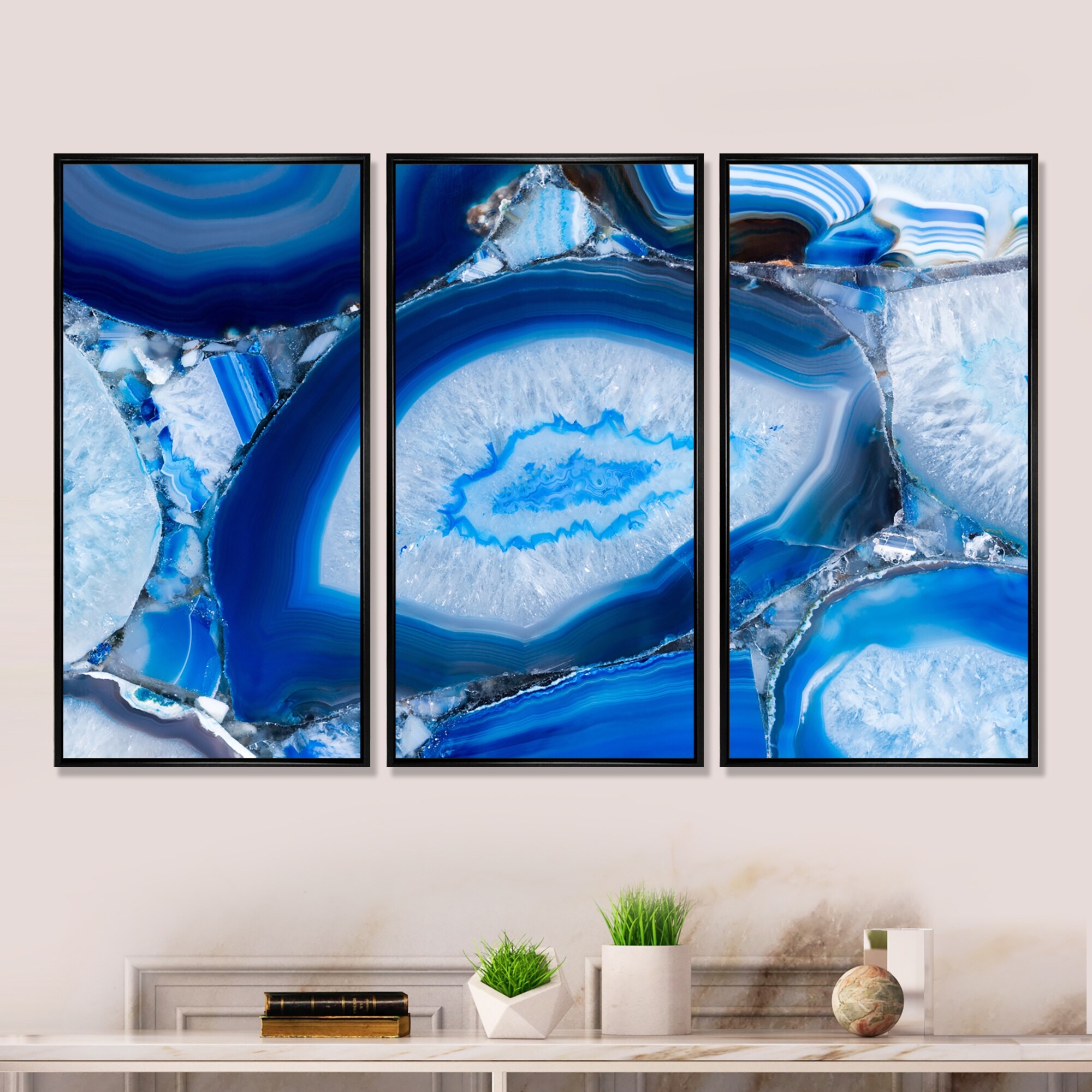Designart "Blue agate" Stone Framed Canvas Wall Art Set of 3 - 4 Colors of Frames