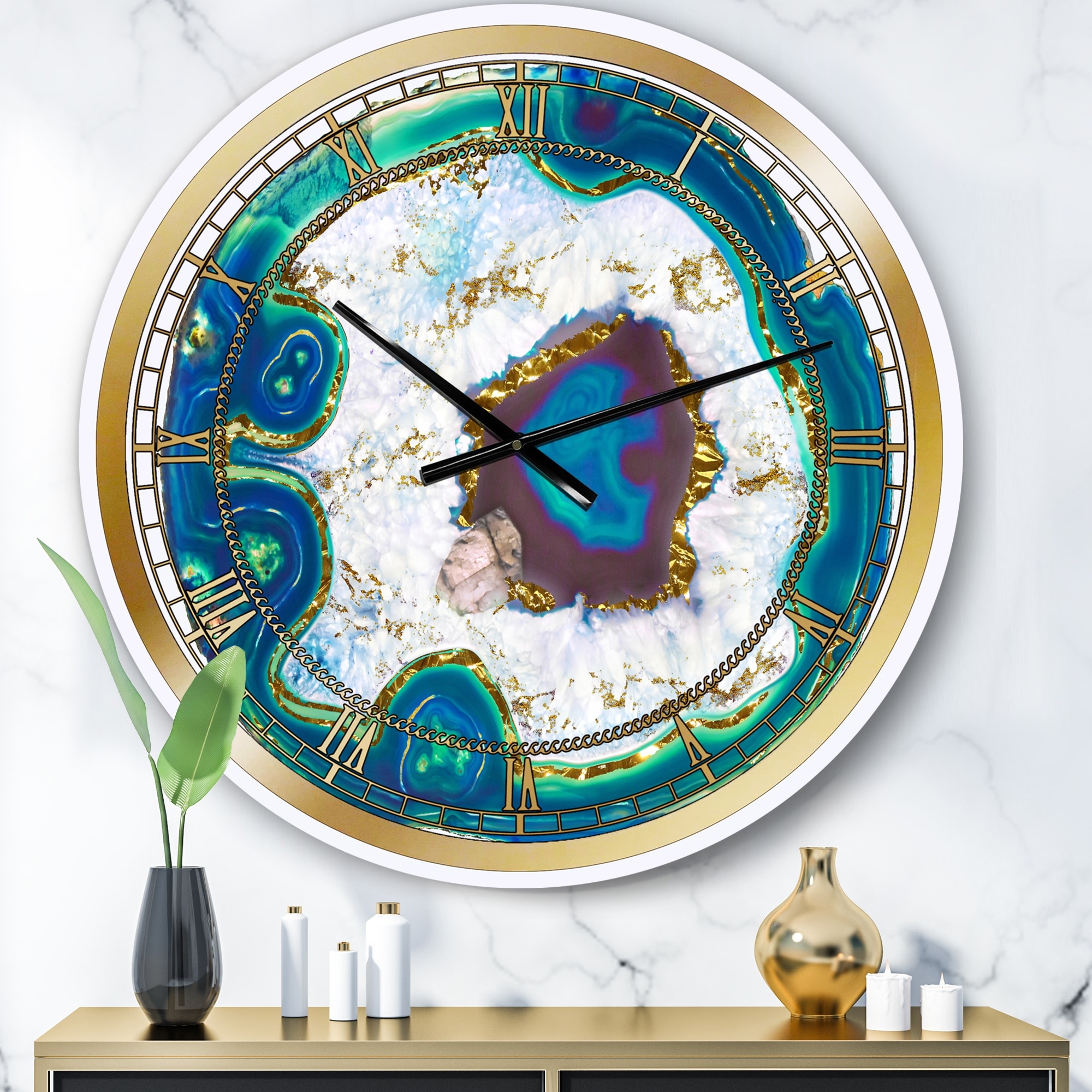 Designart 'Crystal Blue Golden Agate' Modern wall clock