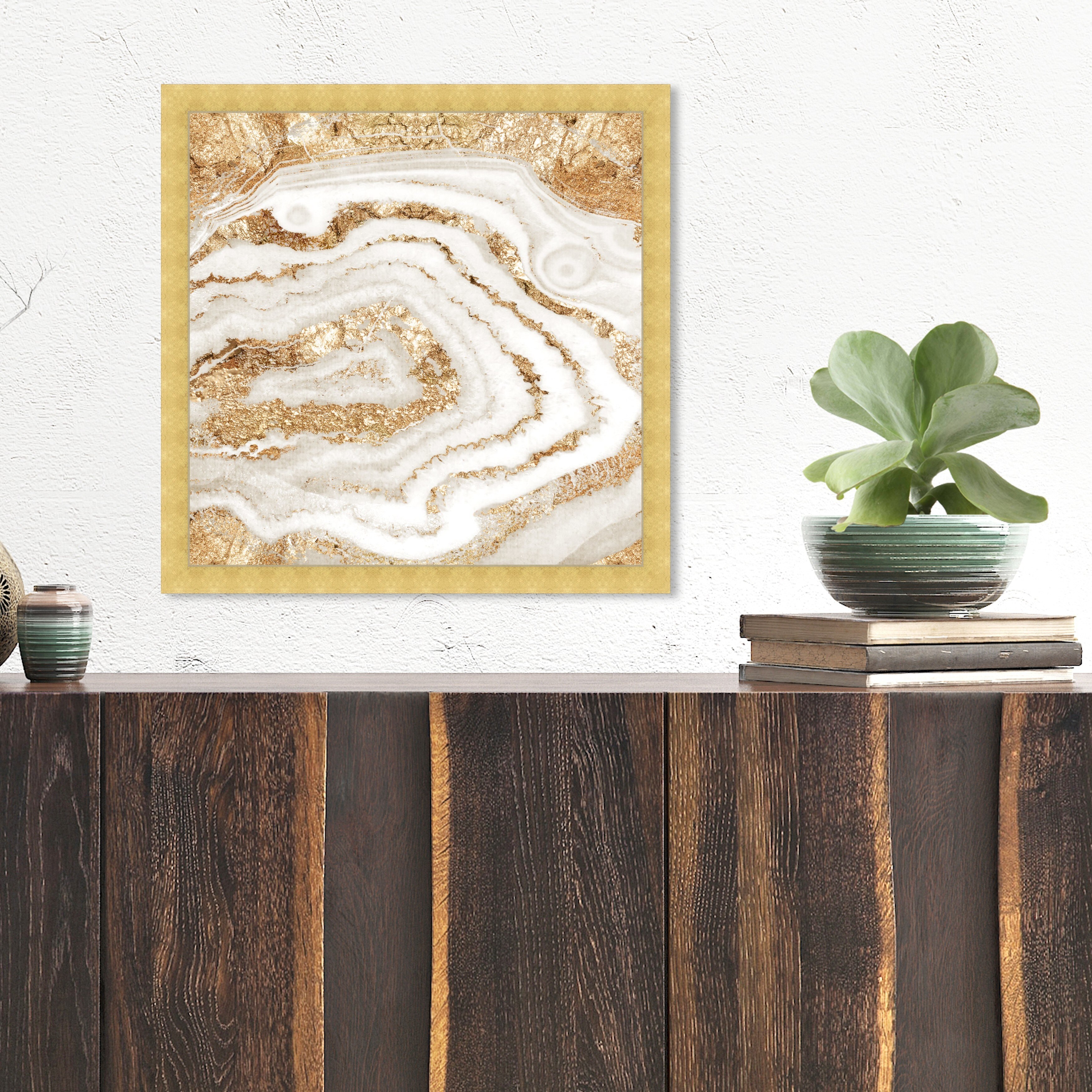 Oliver Gal 'Gold Agate' Abstract Wall Art Framed Print Crystals - Gold, White