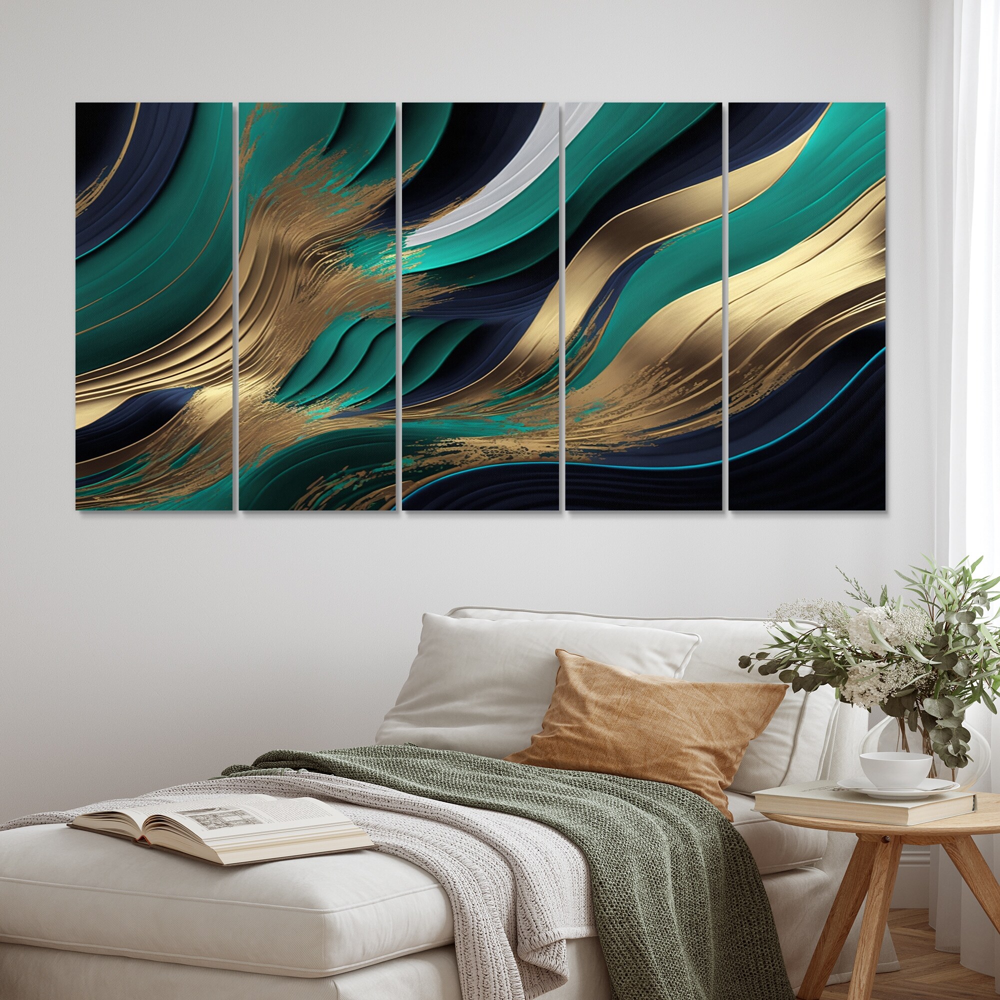 Designart "Green And Gold Agate I" Transitional Multipanel Canvas Wall Art