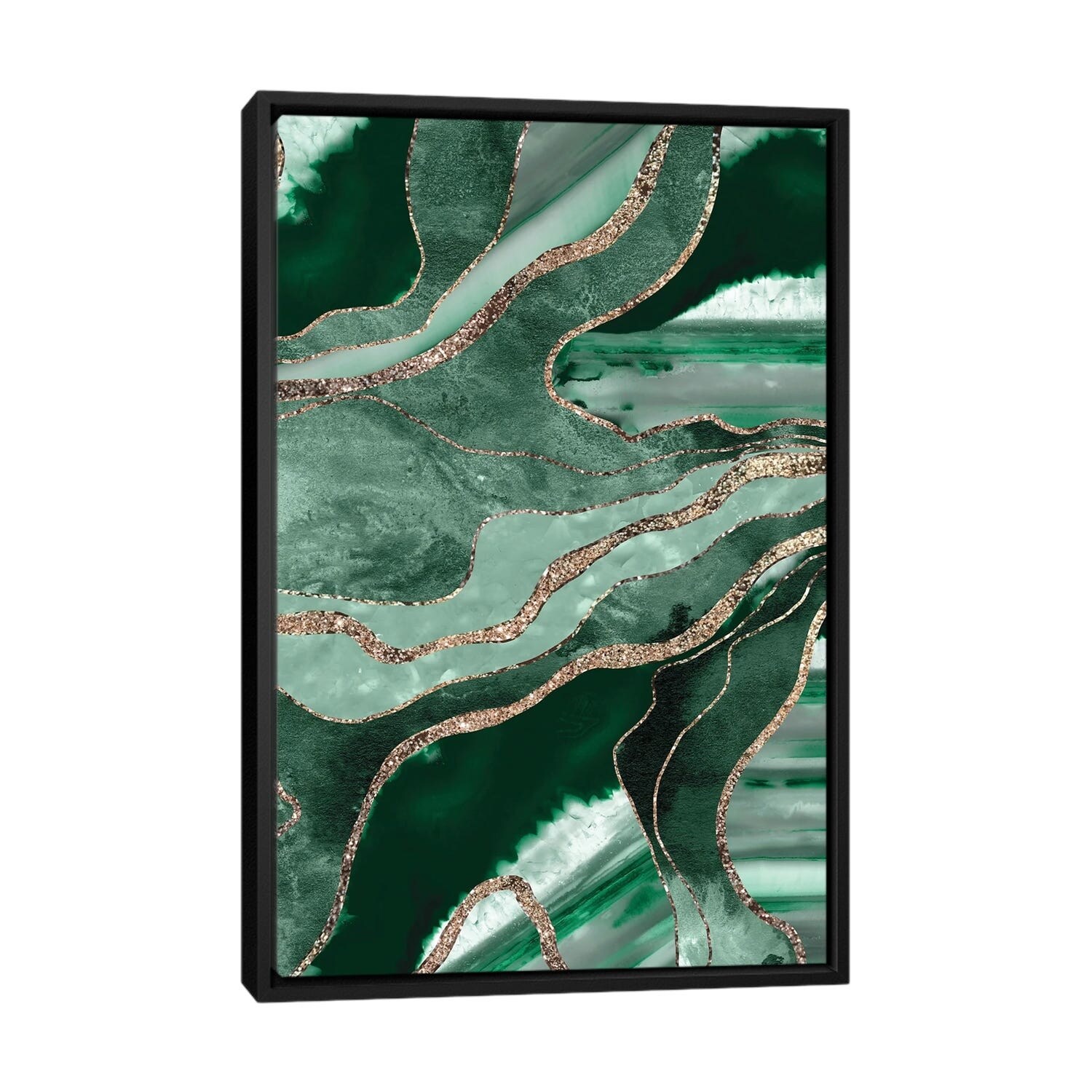 iCanvas "Emerald Green Marble Agate Gold Glitter Glam I" by Anita's & Bella's Art Framed