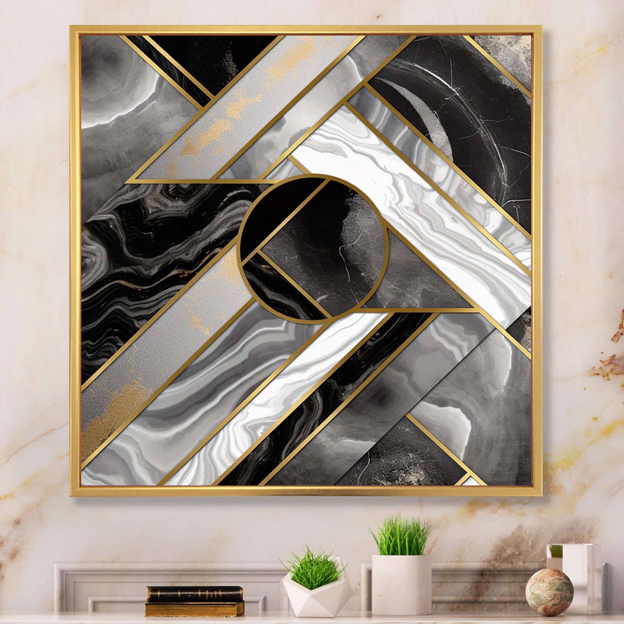 Designart "Marble Granite Agate With Touches of Gold" Modern Framed Canvas Wall Art Print