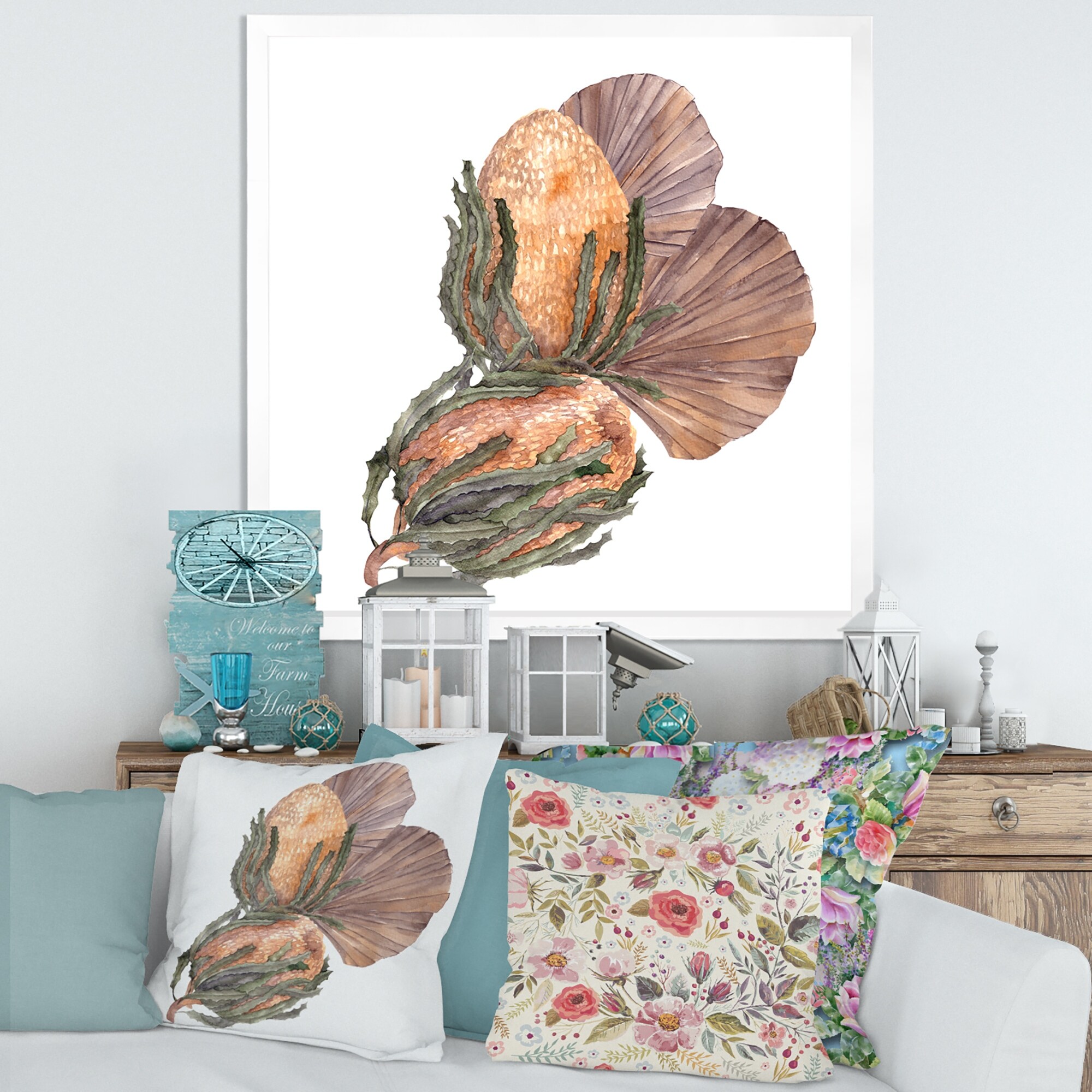 Designart "Bouquet With Dried Flowers Leaves Pampas Grass IV" Traditional Framed Art Print