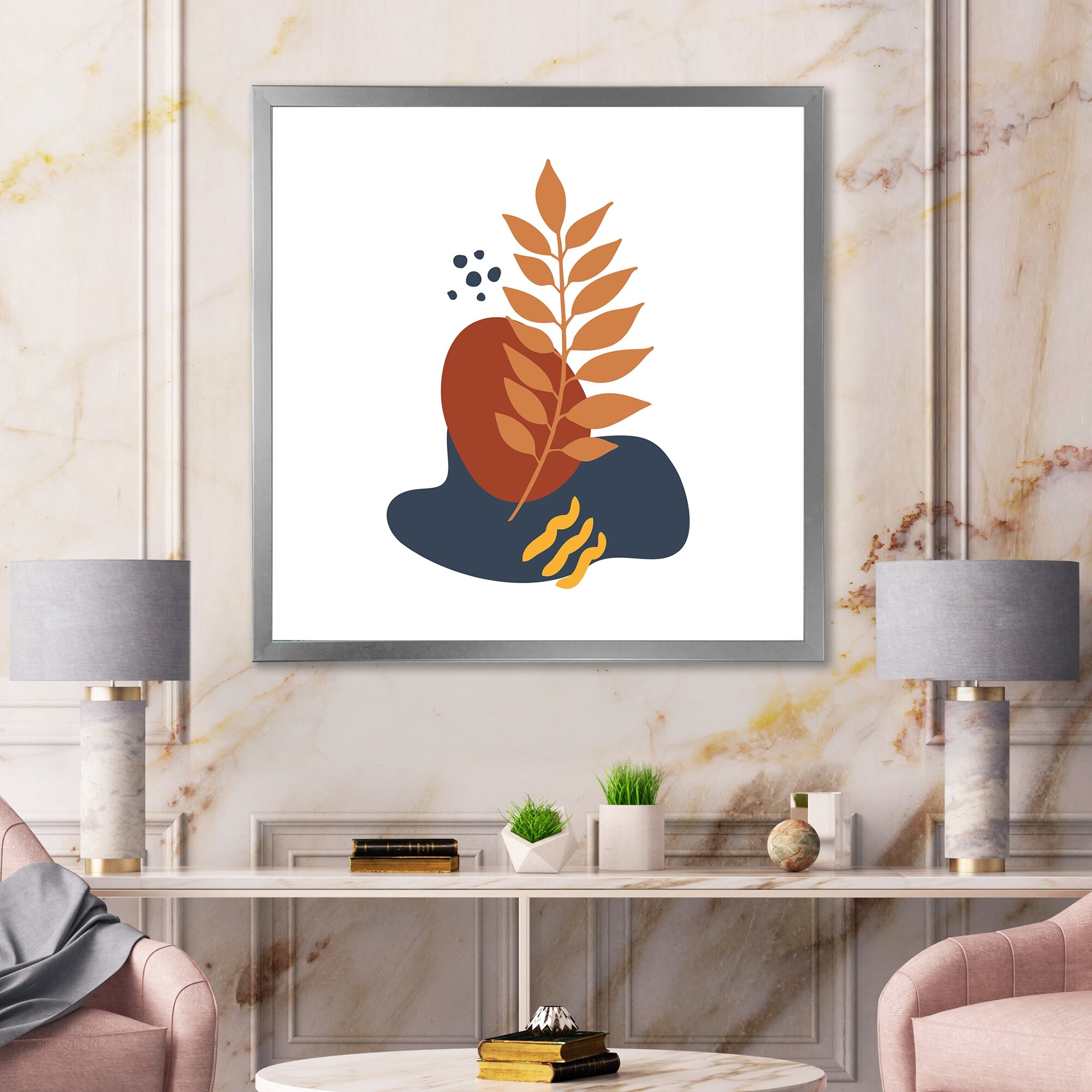 Designart "Abstract Flowers on Minimal Shapes VIII" Modern Framed Art Print