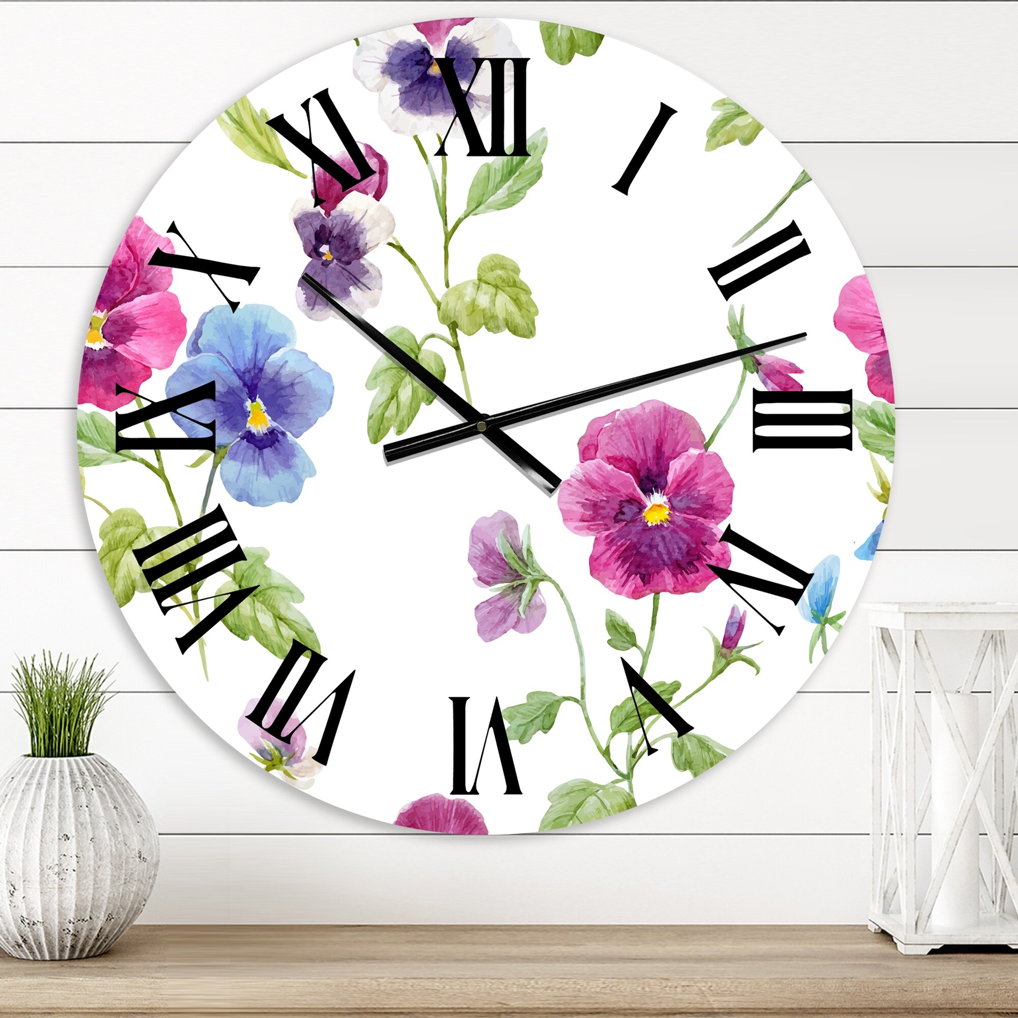Designart 'Pink and Blue Pansy Flowers II' Traditional wall clock