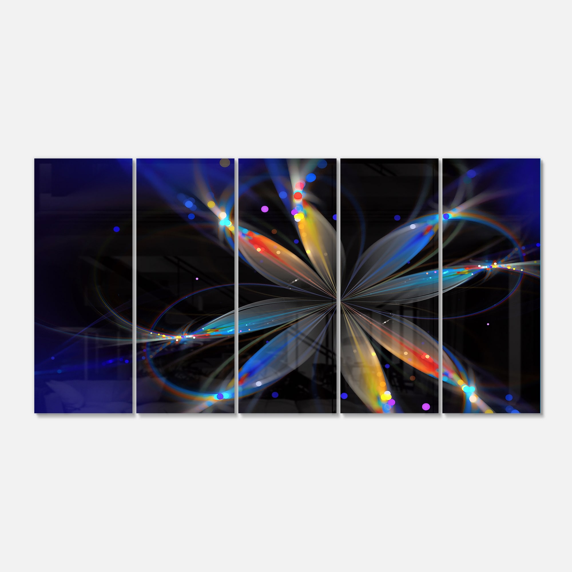 Designart 'Abstract Fractal Flower on Black' Floral Glossy Metal Wall Art