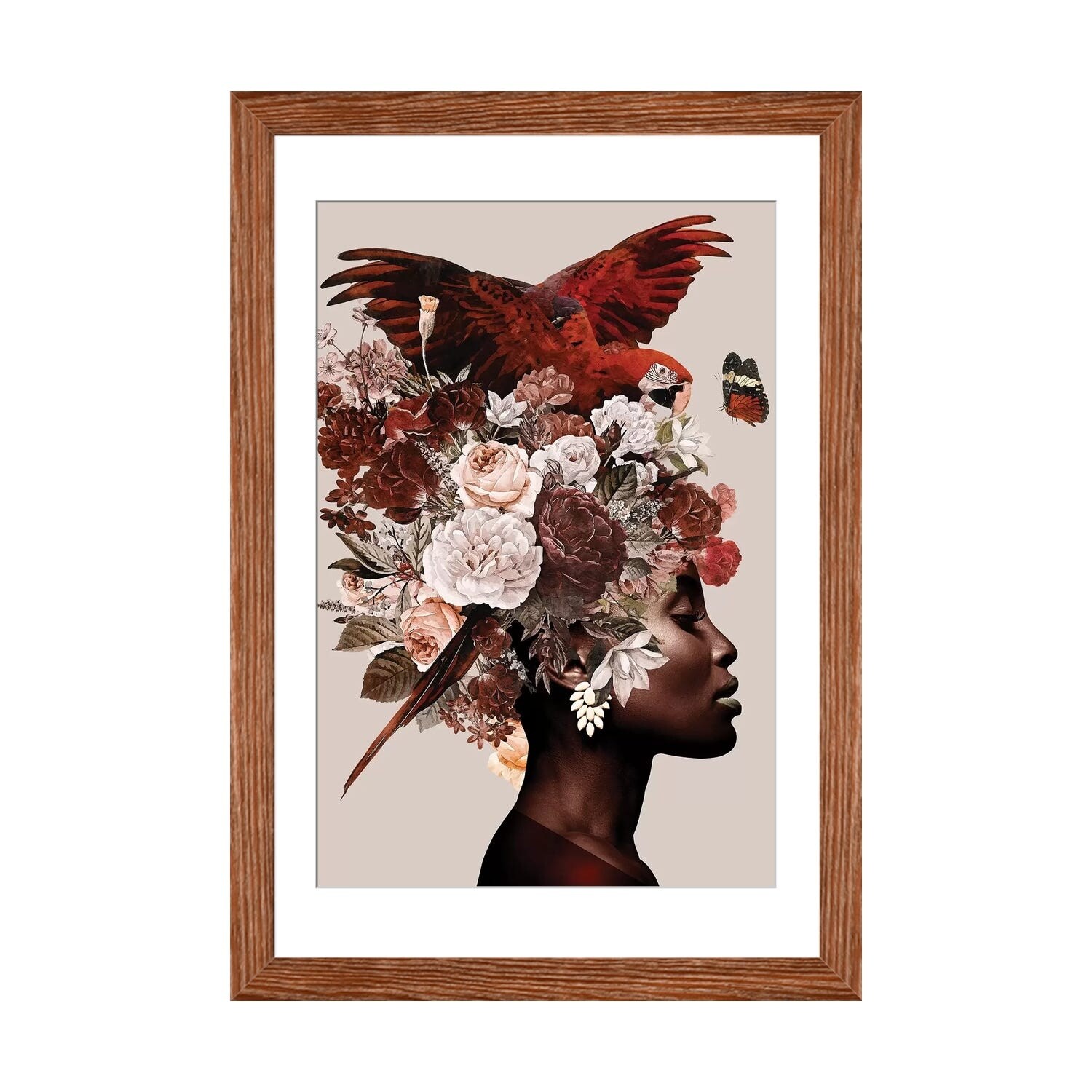 Flower Garden Varietals VI -Framed Print w/glass-Cherry Red