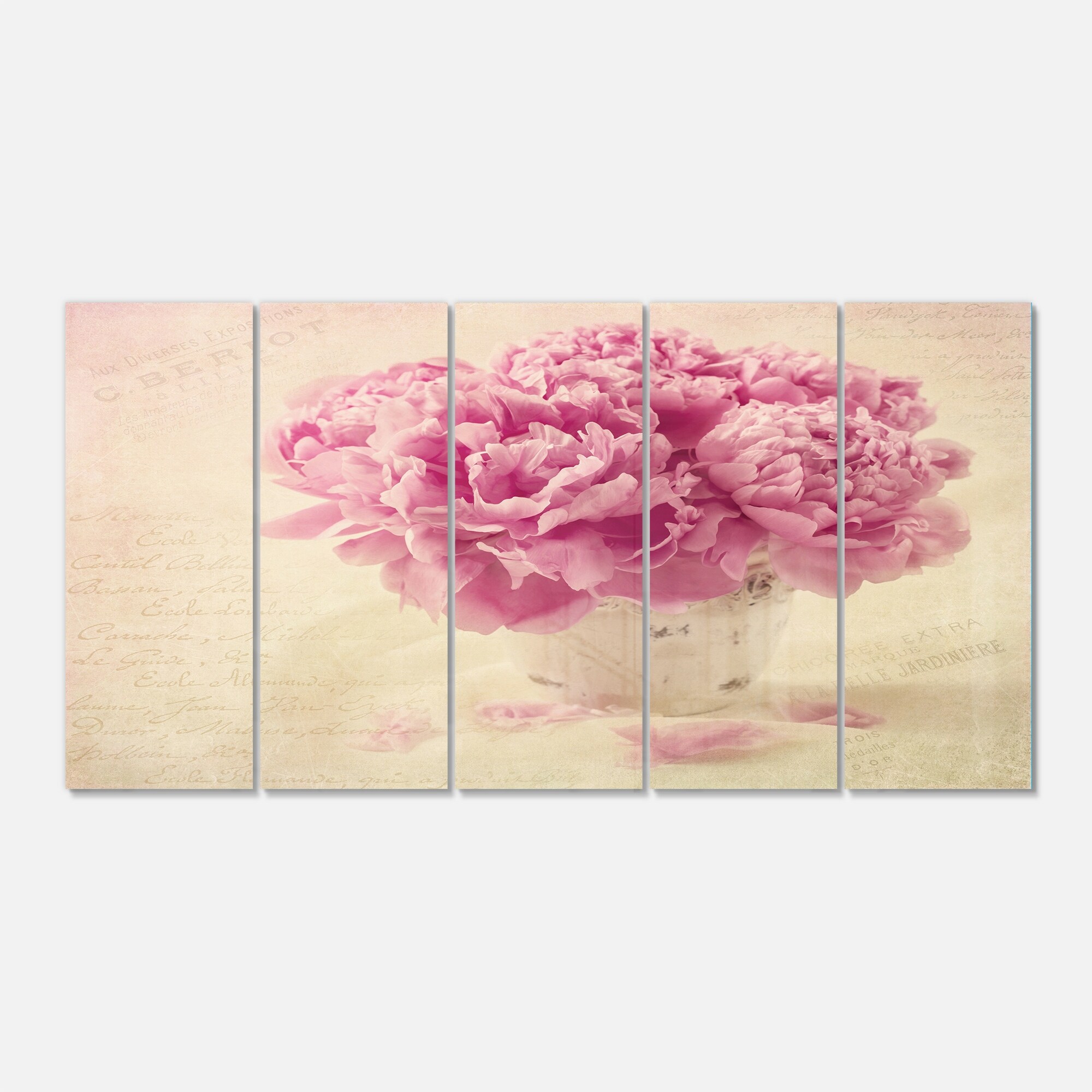 Designart 'Bunch of Peony Flowers on Table' Floral Glossy Metal Wall Art