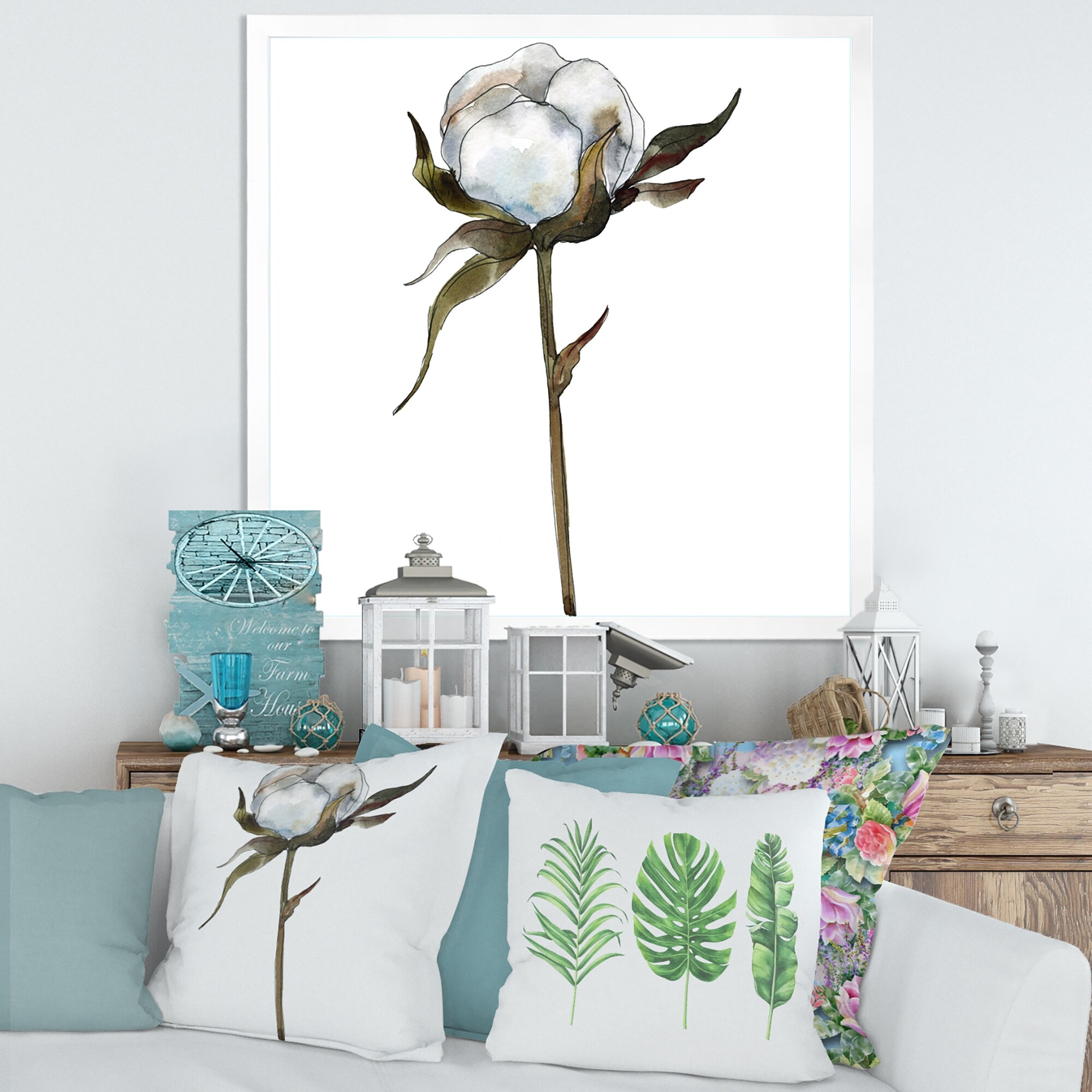 Designart "Retro Cotton Flower" Traditional Framed Art Print