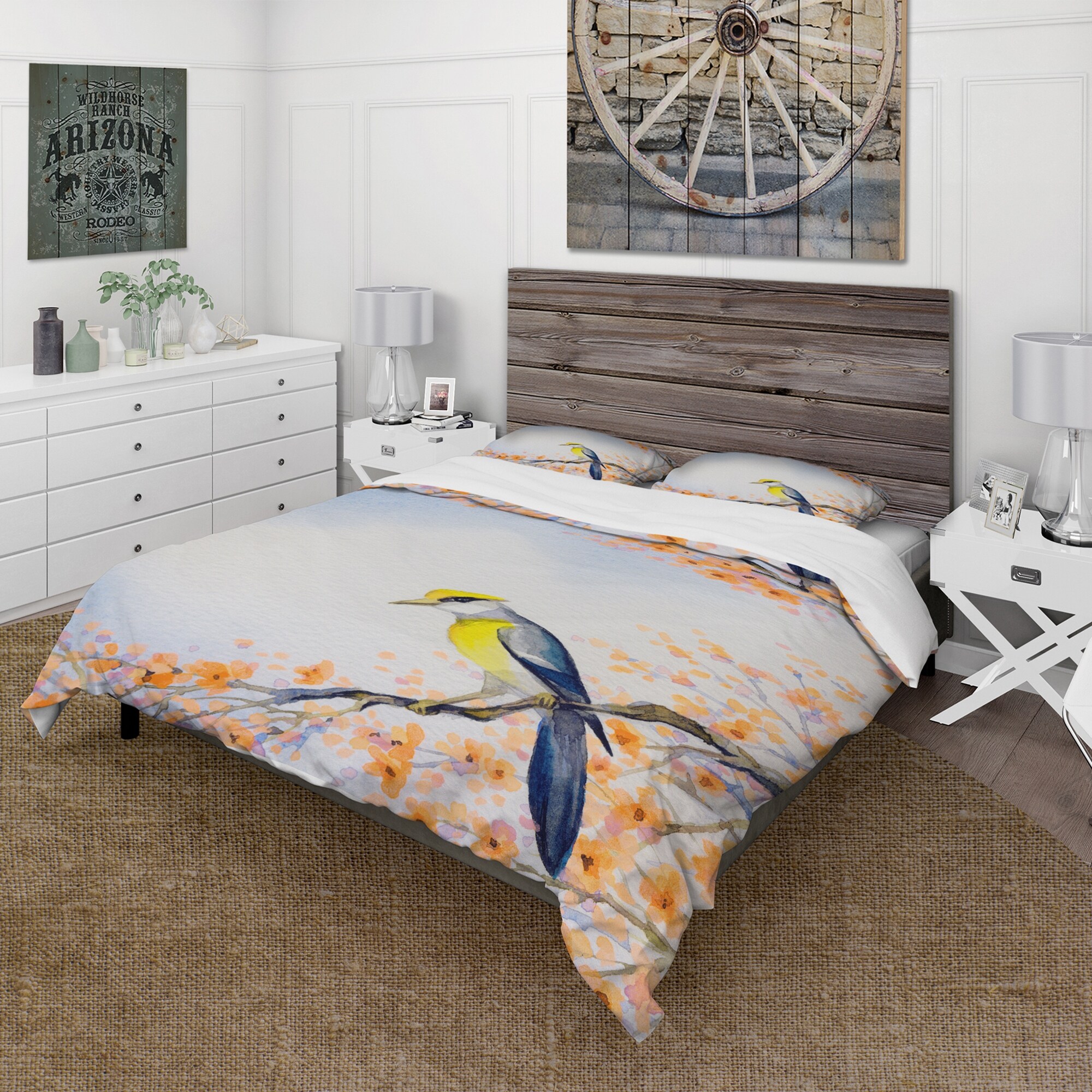 Designart 'Beautiful Blue Bird on Flowering Branch II' Traditional Duvet Cover Set
