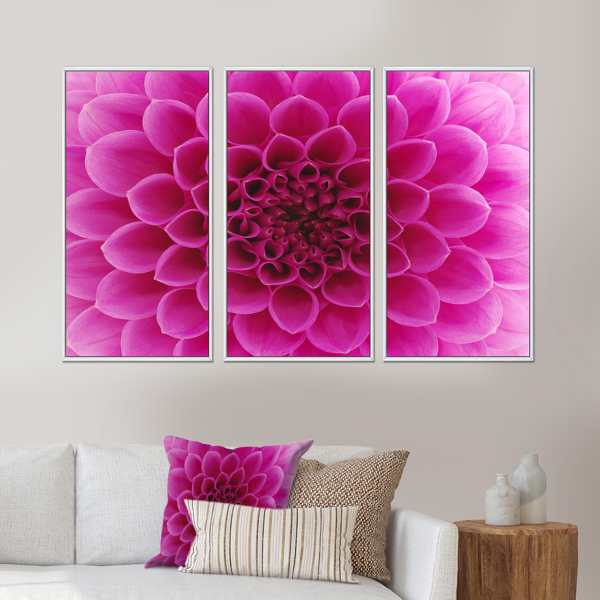 Designart "White Dahlia Flowers I" Floral Dahlia Framed Canvas Art Print - 3 Panels