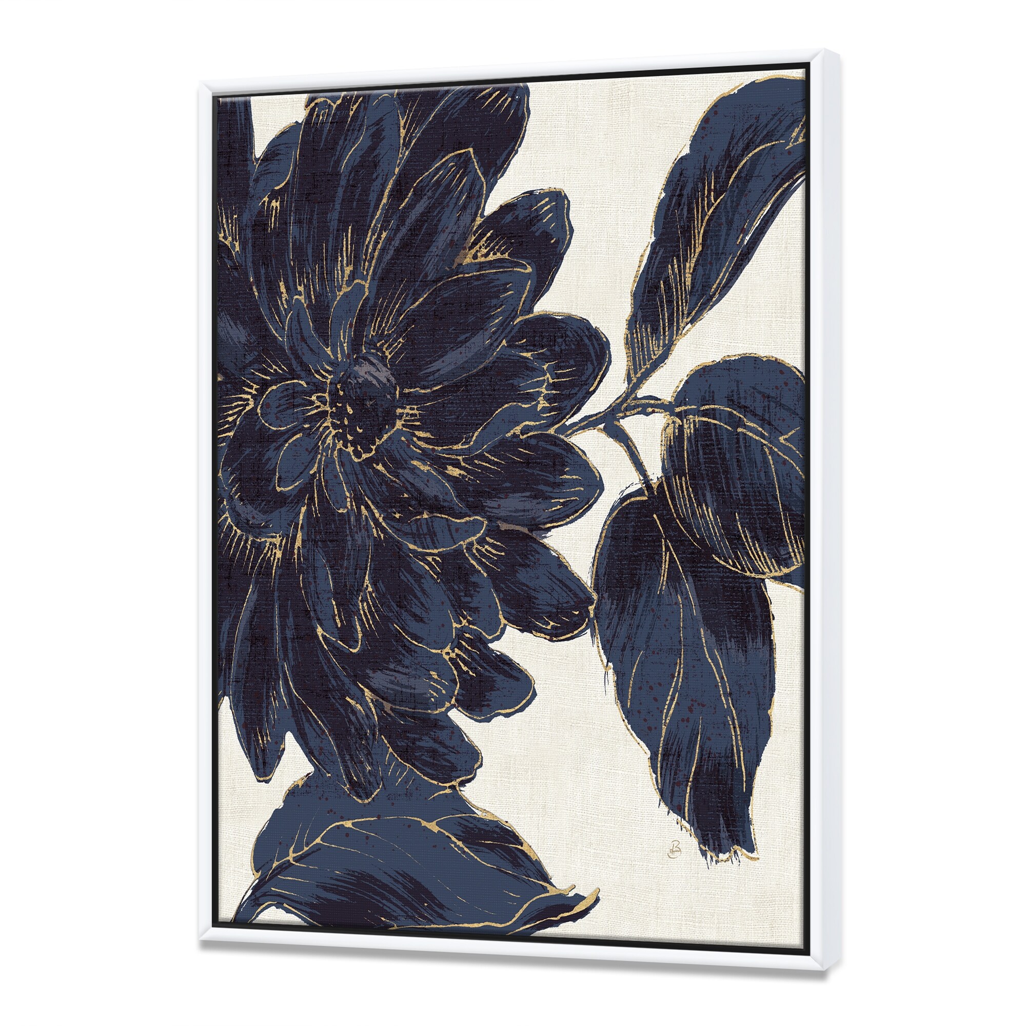 Designart "Indigo Golden Flower" Traditional Framed Canvas - Blue