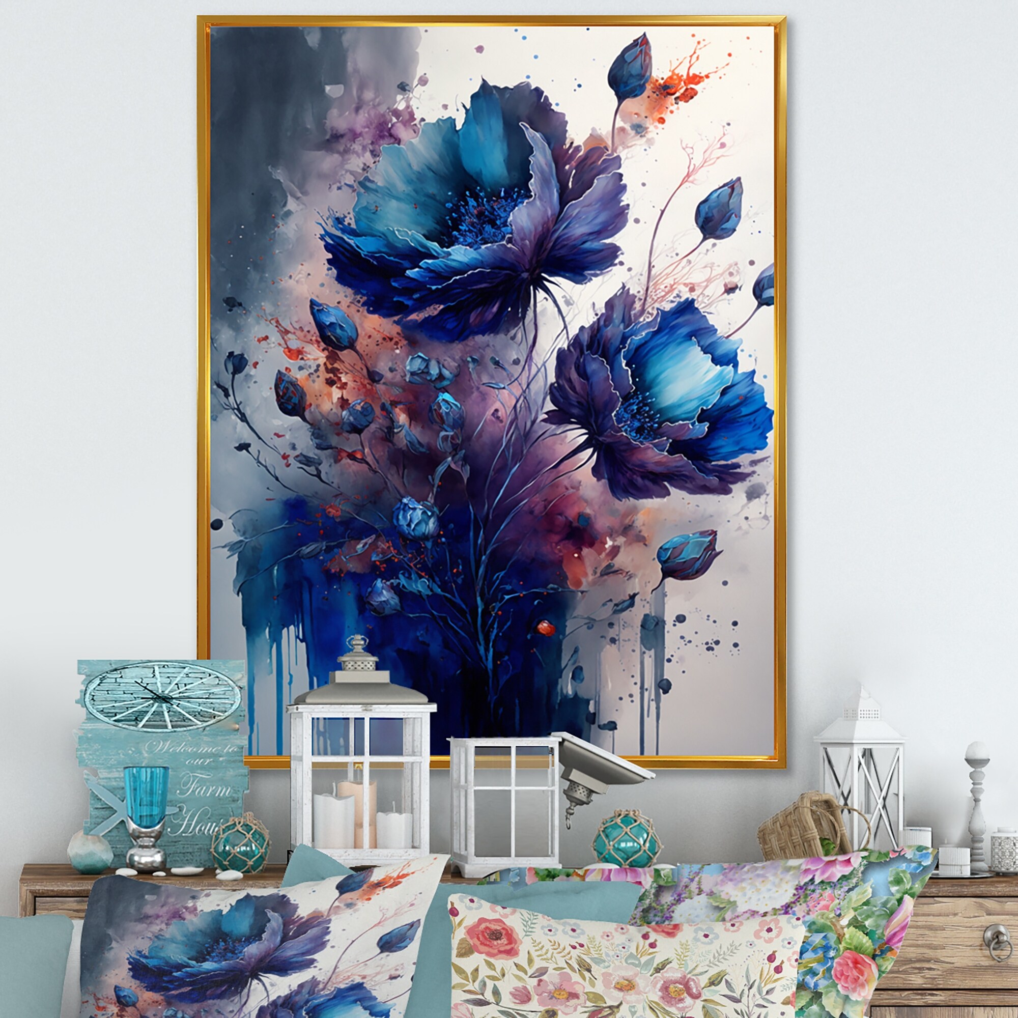 Designart "Vibrant Blue Flower Bouquet II" Floral & Botanical Framed Canvas Art Print