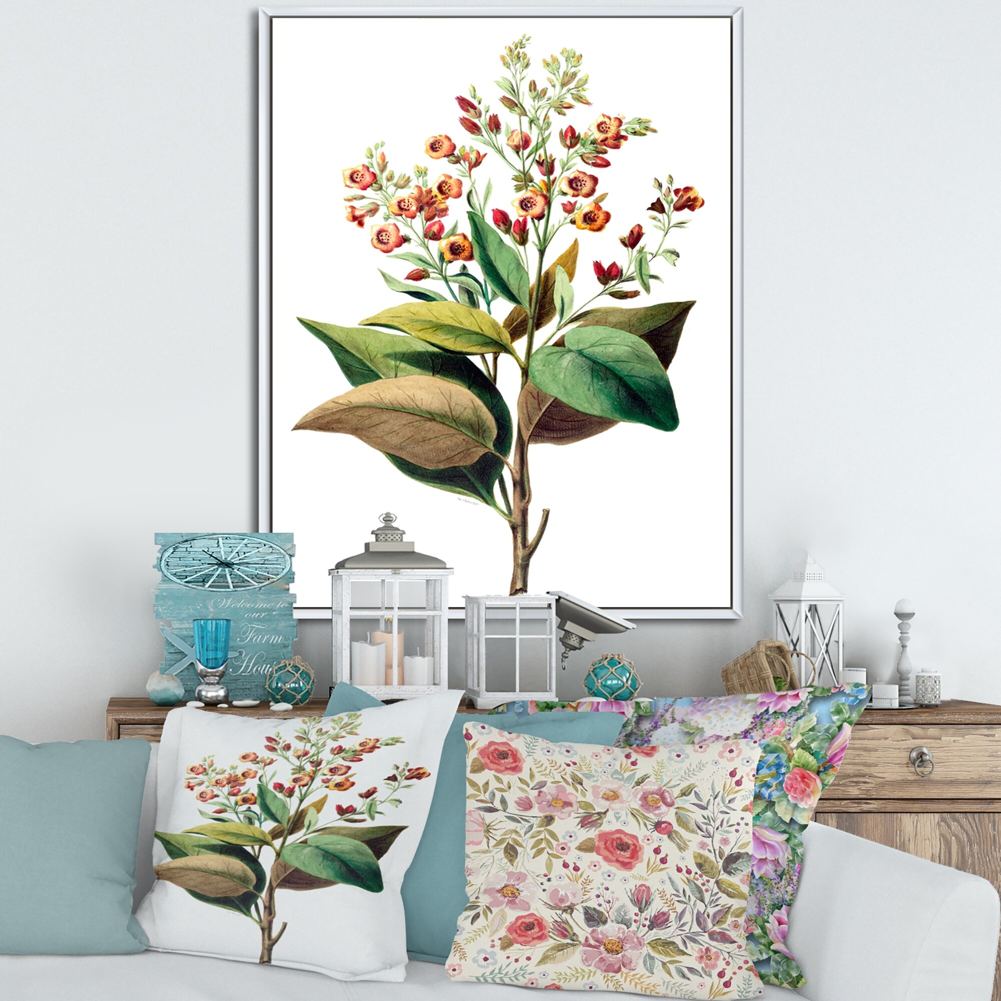 Designart "Vintage American Flowers II" Traditional Framed Canvas Wall Art Print