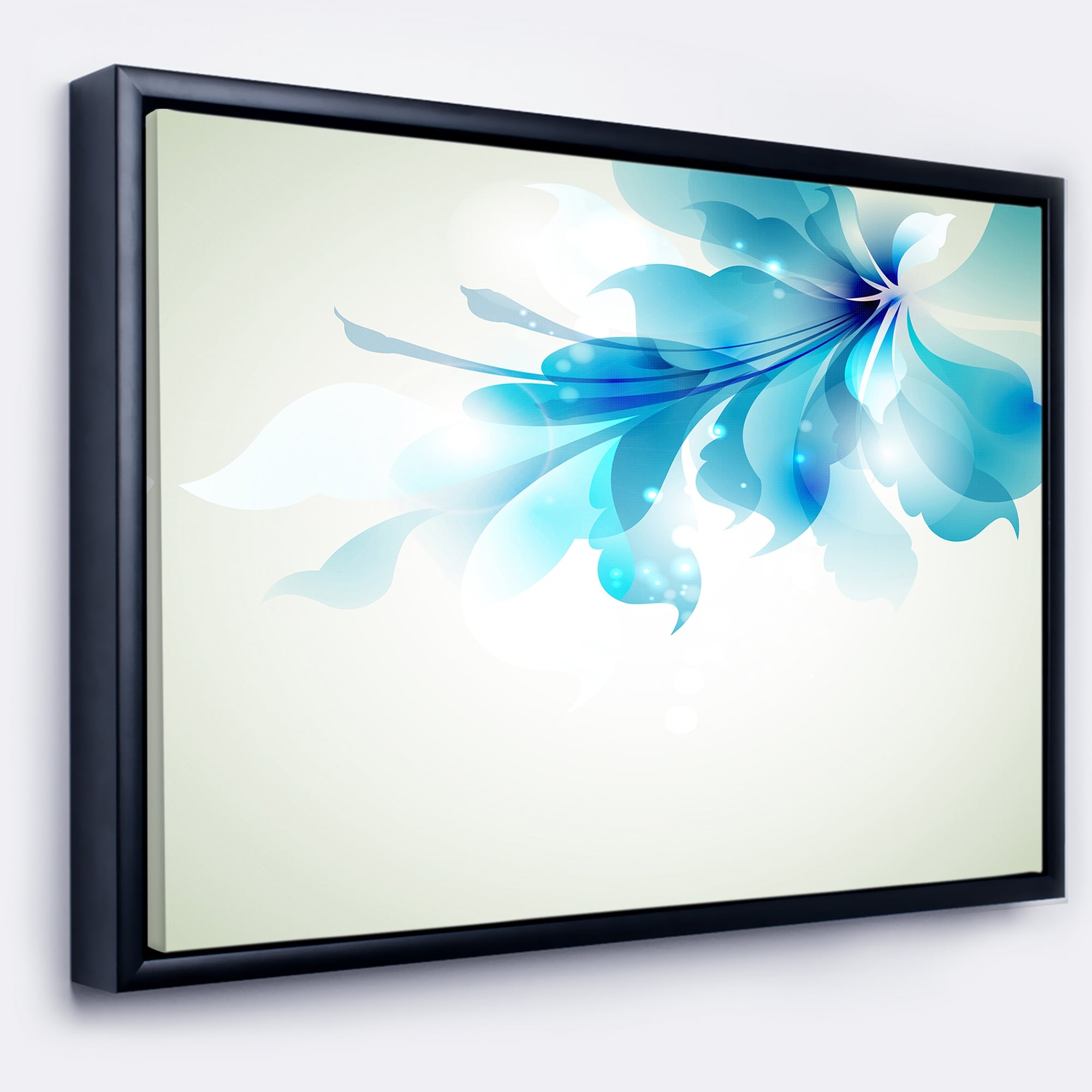 Designart "Tender Blue Abstract Flowers" Floral Art Framed Canvas Print